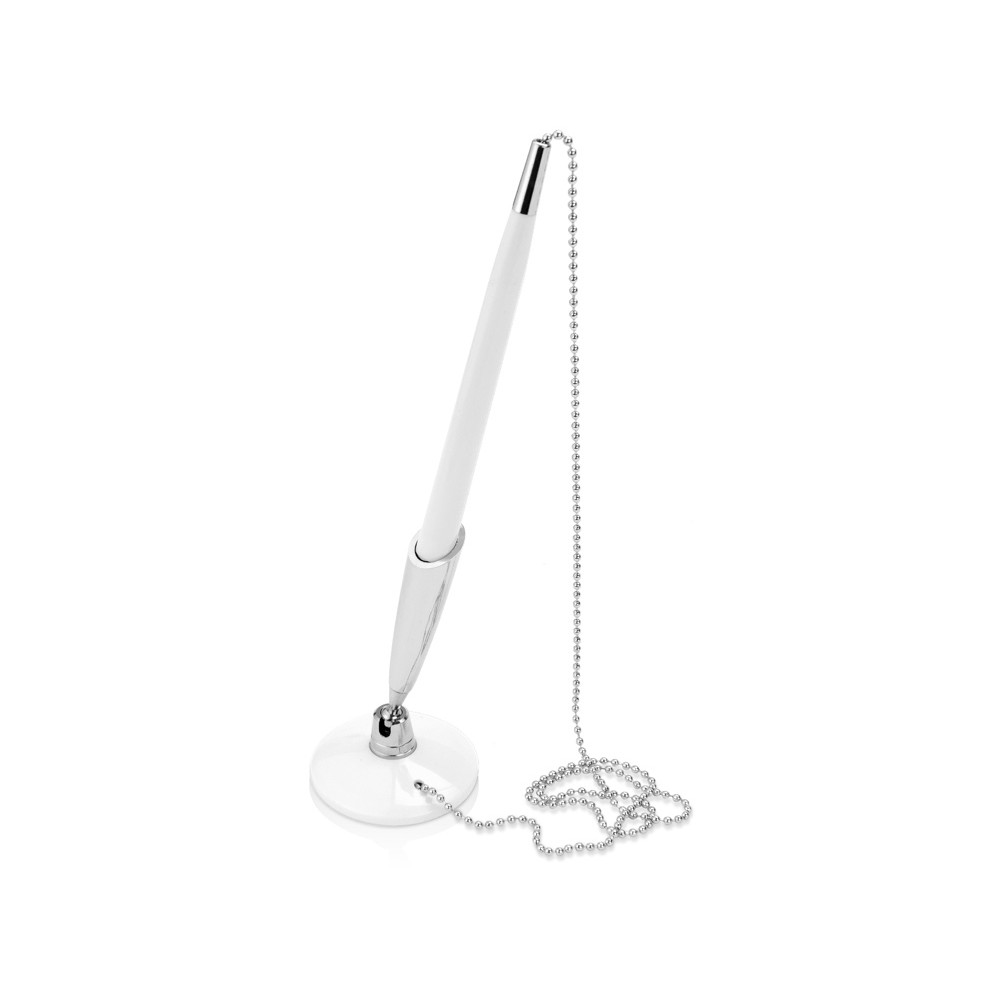 Ручка пластиковая шариковая на подставке «Холд». Шариковая ручка на подставке – неотъемлемый атрибут клиентских офисов. Разнообразие расцветок позволит подобрать ручку в тон логотипу компании. Ручка на подставке «Холд» легко крепится к столу с помощью двухстороннего скотча и подойдет для банков, отелей, сервисных центров и других организаций. Длина цепочки 57 см.