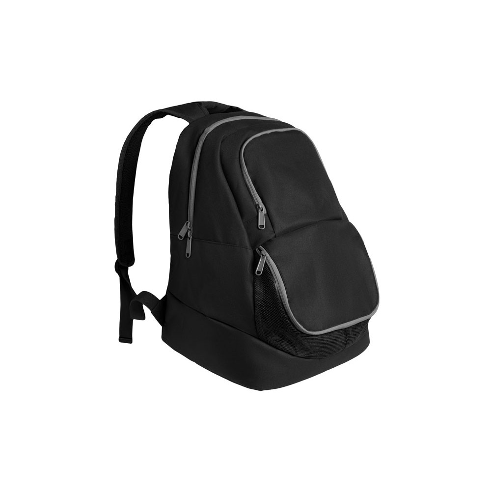 Спортивный рюкзак с эргономичным дизайном. Двойные усиленные плечевые ремни и одна ручка. Стеганая спинка. Переднее отделение для обуви. Одно основное отделение с двойным бегунком и наружный передний карман меньшего размера. · Контрастные застежки-молнии серого цвета. Детали черного цвета. Водонепроницаемый.