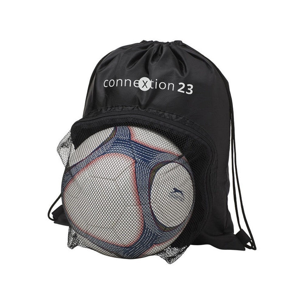 Спортивный рюкзак, стягивающийся вверху шнуром. Большое основное отделение с кулиской. Сетчатое отделение на молнии спереди для футбольного мяча.