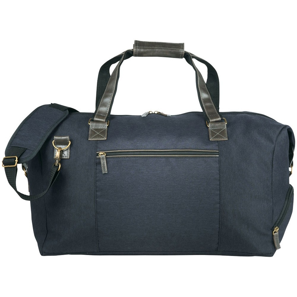 Дорожная сумка Capitol. Обозначьте свой особый стиль с коллекцией сумок Capitol. Сочетание современного и классического дизайна. Основное отделение на молнии, отделение для обуви на молнии, передний карман на молнии, твердое дно в комплект не входит. Отстегивающийся регулируемый ремень на плечо. Виниловые аксессуары для дополнительных возможностей нанесения. 600D полиэстер.