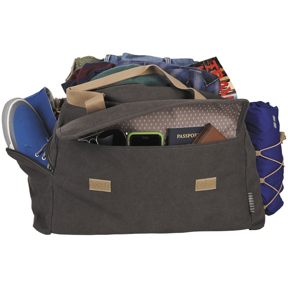 Сумка Field & Co.® Venture 16". Сумка Venture разработана для людей, которые жаждут приключений. Большое основное отделение с внутренним карманом из сетки. Большой карман спереди с органайзером. Съемные регулируемые лямки. Карман сбоку. Стропа для крепления к чемодану. 16 oz. холщовый хлопок.