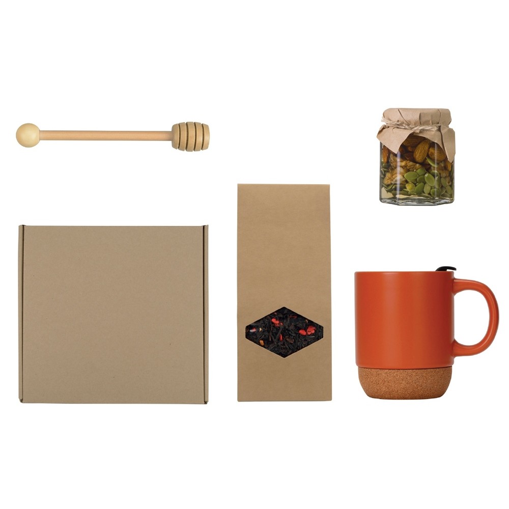 • Подарочный набор с кружкой, медом и ложкой для меда, оранжевый