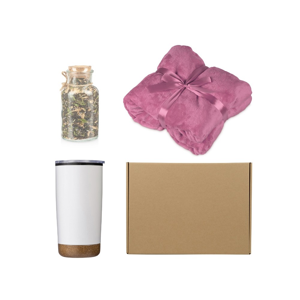 • Подарочный набор с пледом, термокружкой и чаем, розовый