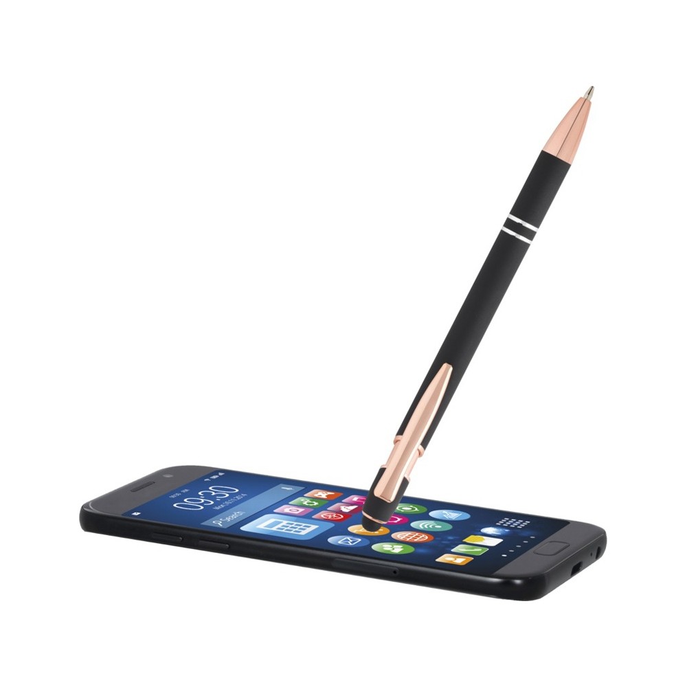 Шариковая ручка Nanna с покрытием из розового золота имеет корпус из переработанного алюминия и сенсорный стилус из силикона. Переработанный алюминий уменьшает количество отходов на свалках и помогает сохранять природные ресурсы для сокращения выбросов парниковых газов. Цвет чернил: синий. Длина непрерывной линии: 800 метров. Размер пера: 1,0 мм. Recycled Aluminium.