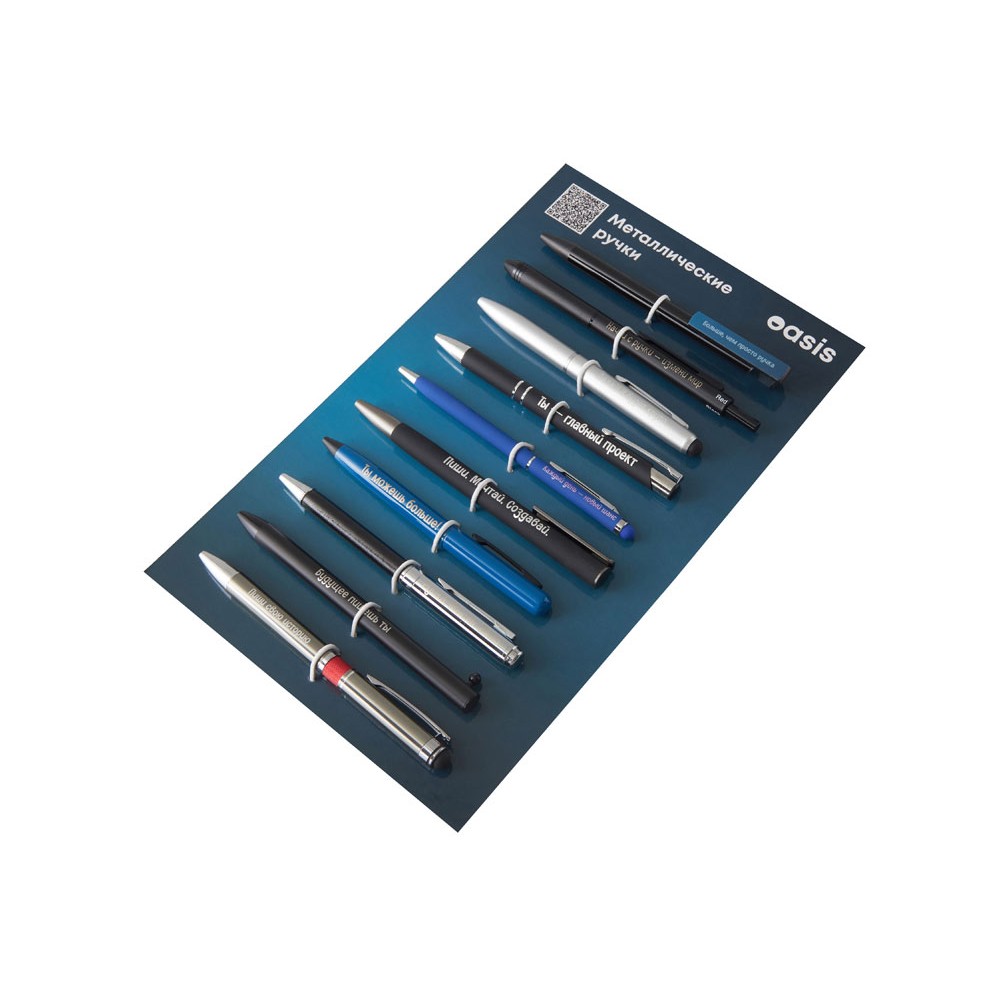 Промо-сет металлических ручек — это презентационный комплект, включающий 10 уникальных моделей с несколькими вариантами нанесения: УФ-печать, гравировка.