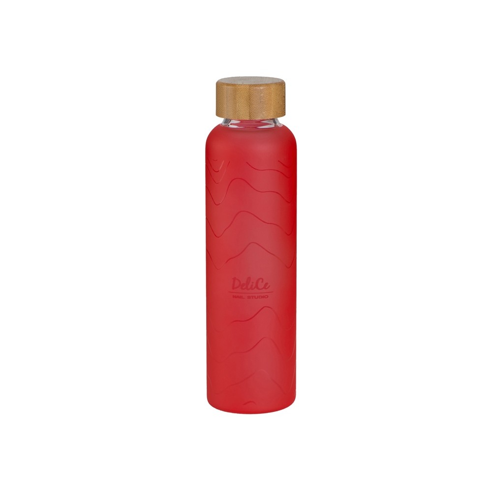 Стеклянная бутылка с бамбуковой крышкой «Foggy», 600 мл, красный, с УФ печатью