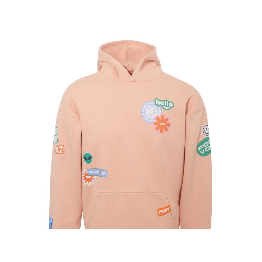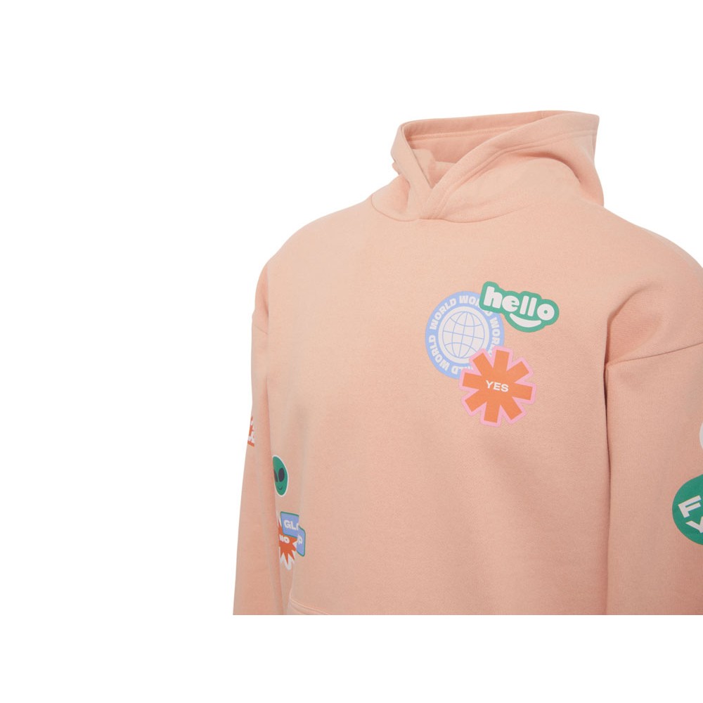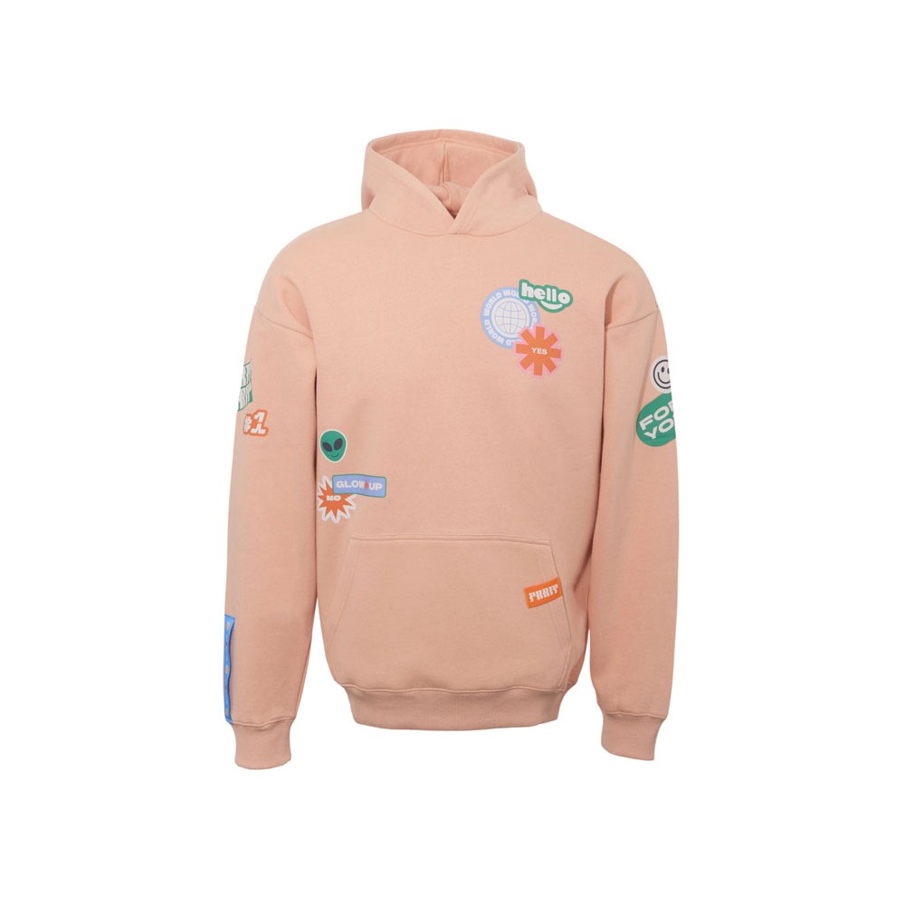 Толстовка с капюшоном оверсайз «Berlin» унисекс, лососевый, ДТФ, бренд тайп и лейбл