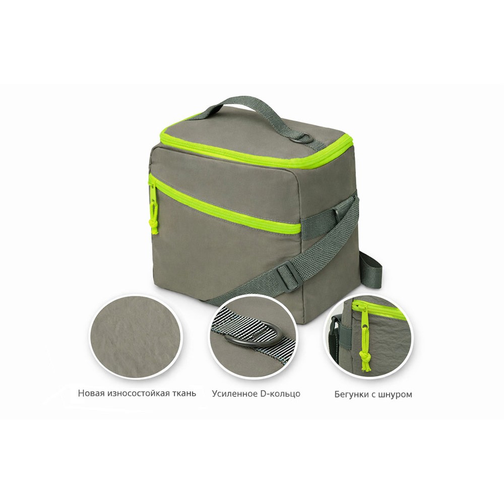 • Изотермическая сумка-холодильник "Neo Classic" c контрастной молнией, серый/зеленое яблоко