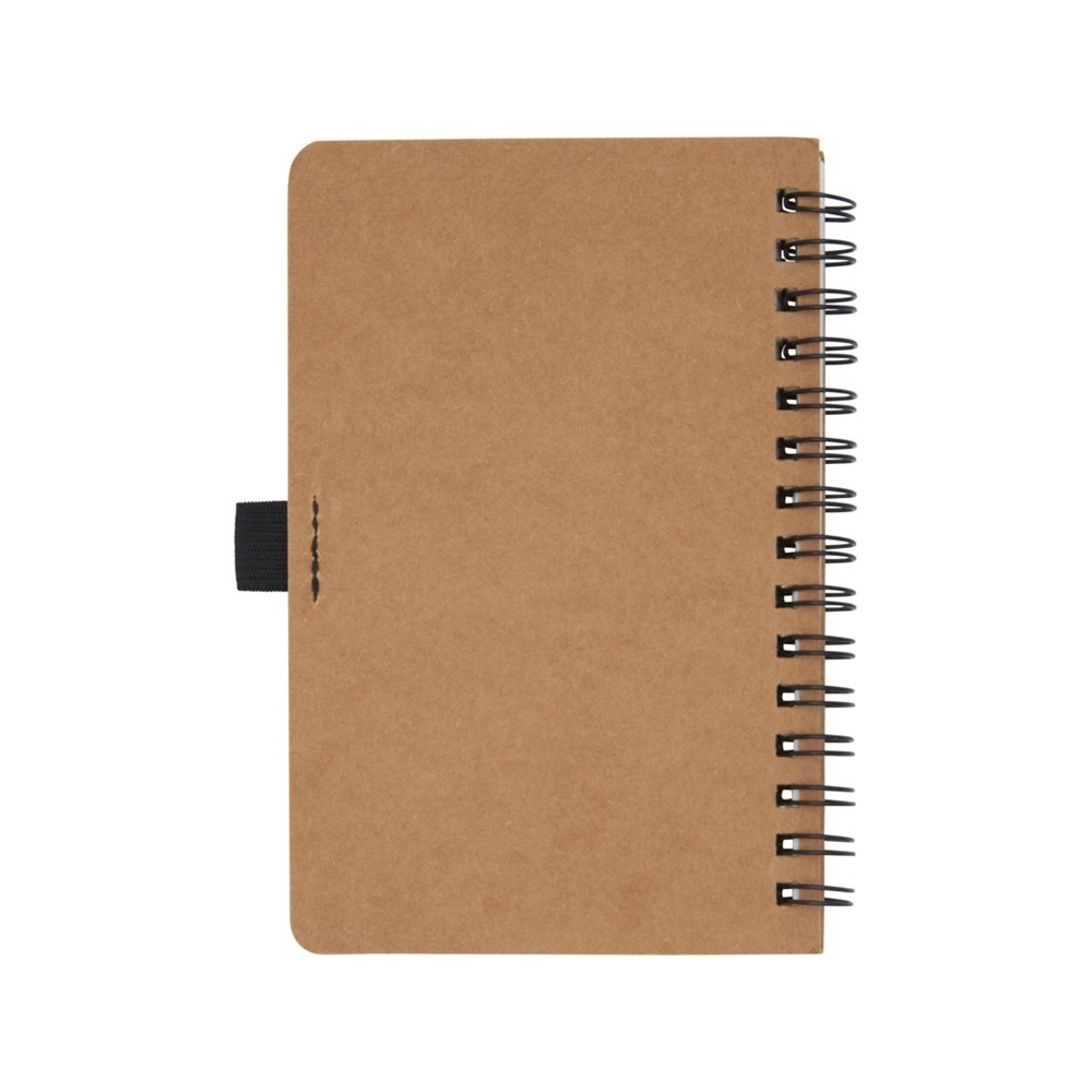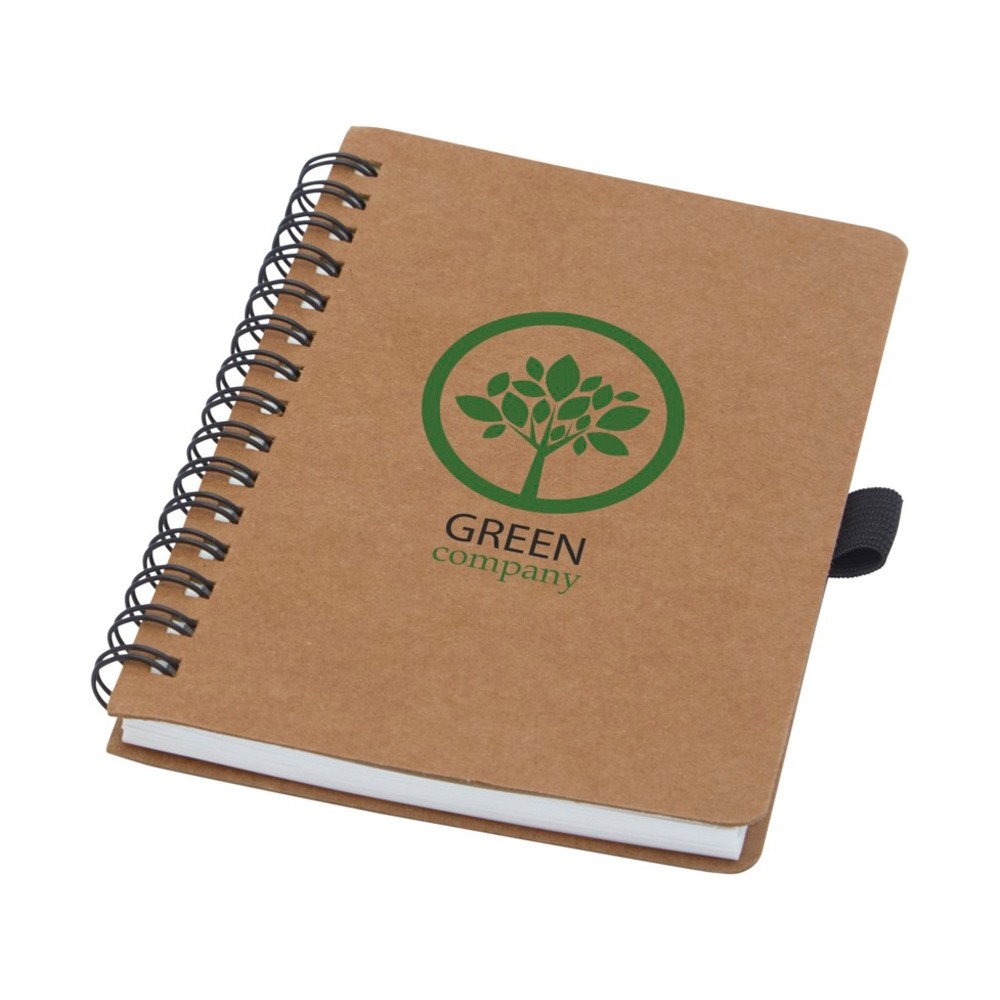 Блокнот на пружине формата A6, изготовленный из переработанного картона, с петлей для ручки. Содержит 70 листов в линию плотностью 60 г/м², изготовленных из каменной бумаги. В производстве каменной бумаги не используется дерево, а на сам процесс изготовления затрачивается гораздо меньше энергии в сравнении с производством переработанной или целлюлозной бумаги. Бумага водонепроницаемая и стойкая на разрыв. Имеет естественный белый цвет (без отбеливания).