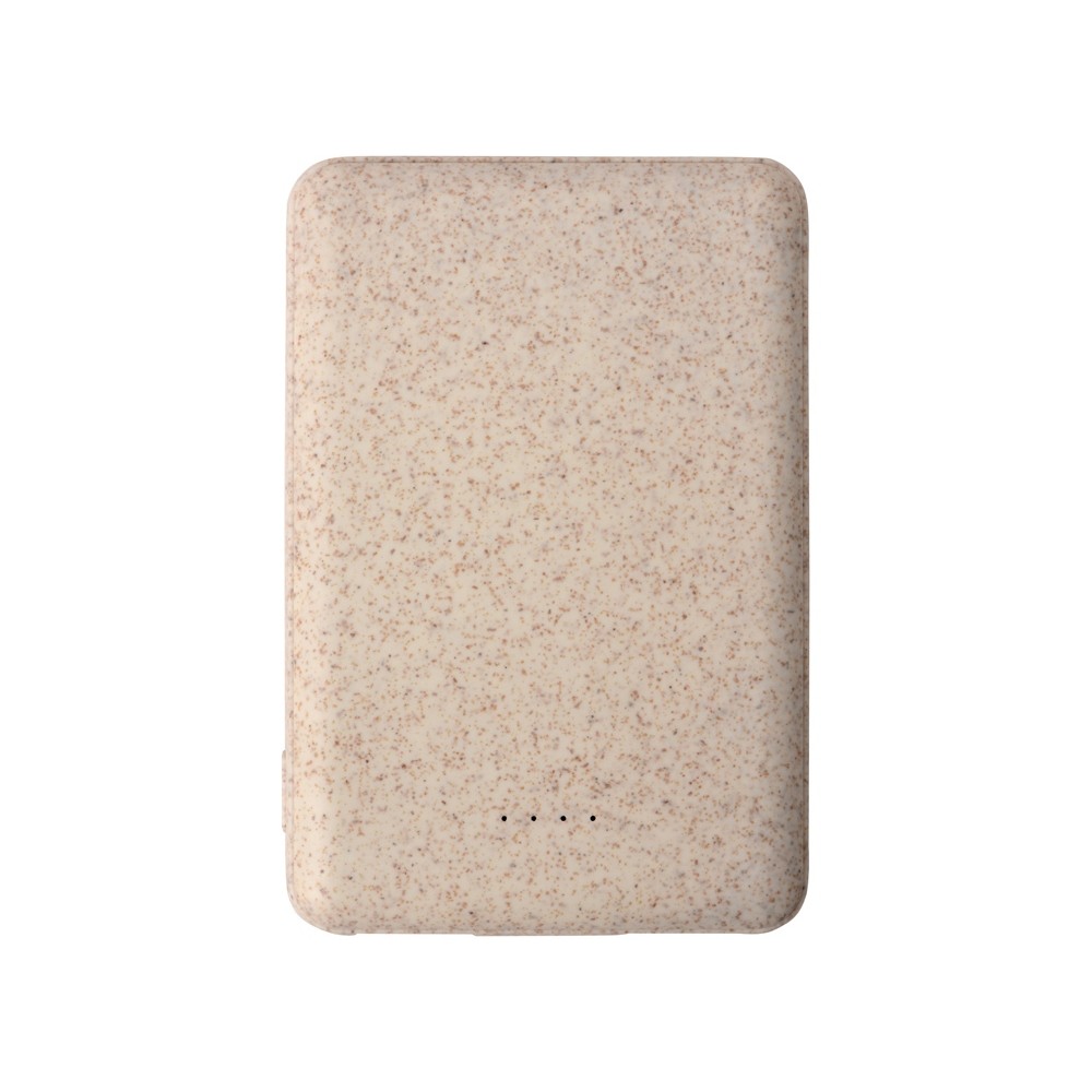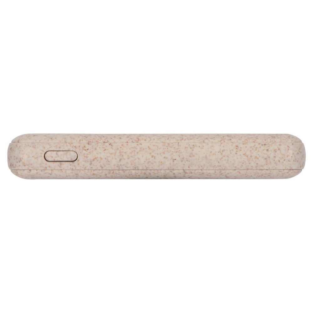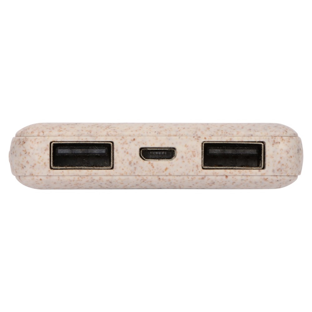 Портативное зарядное устройство "Wheatty" на 35% состоит из переработанной пшеничной соломы, что является положительным примером сокращения производства и потребления пластика в мире. Повербанк имеет миниатюрный размер и небольшой вес. Может заряжать два устройства одновременно. Поставляется в крафт упаковке из переработанной бумаги.