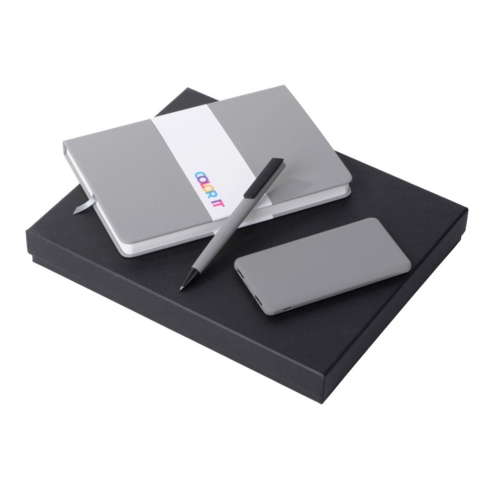 • Подарочный набор c блокнотом С2, ручкой и повербанком 5000 mAh, серый