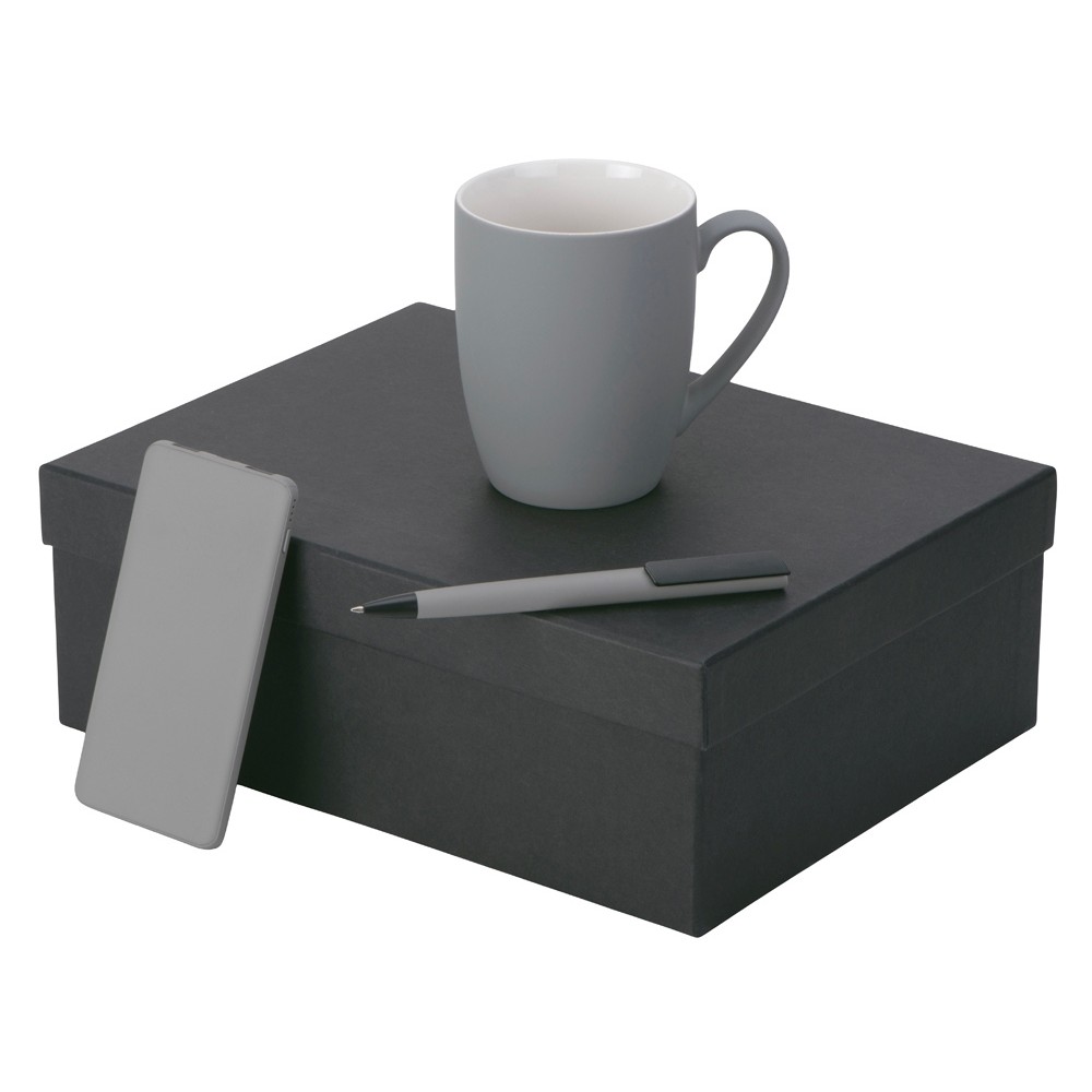 Подарочный набор c кружкой, пластиковой ручкой и повербанком С2, 10000 mAh, серый