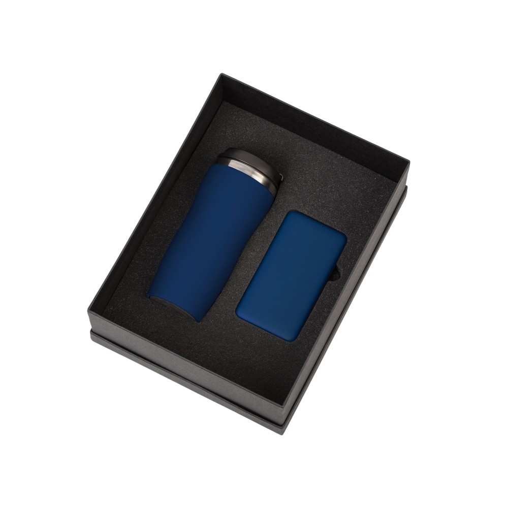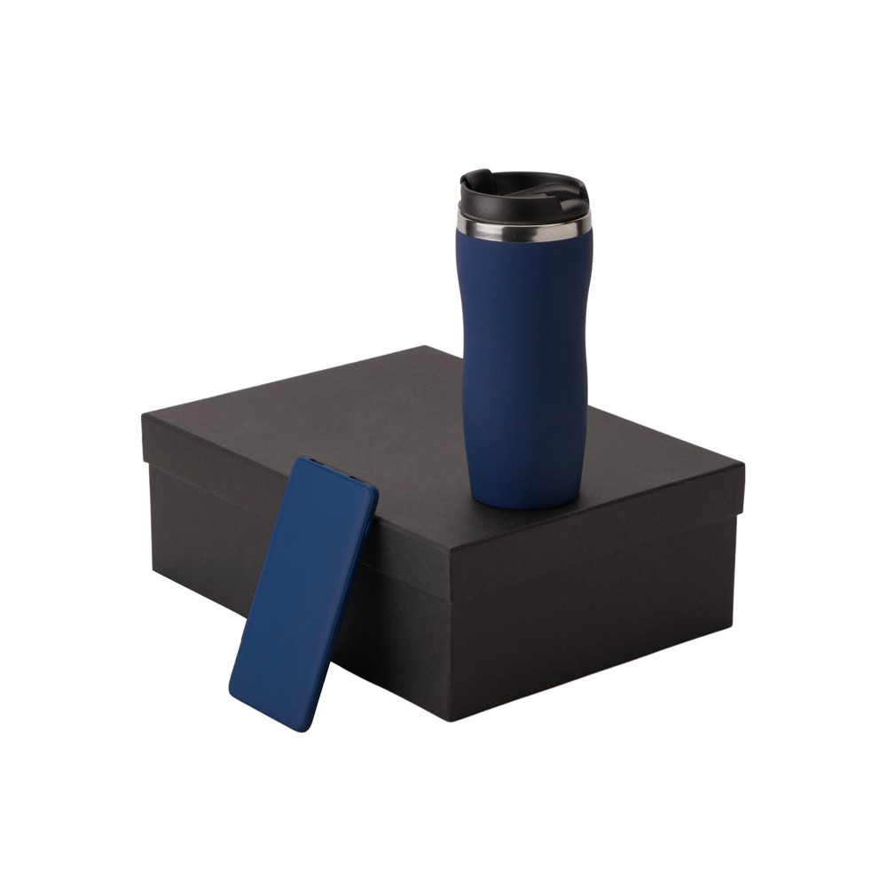 • Подарочный набор c вакуумной термокружкой и повербанком С1, темно-синий