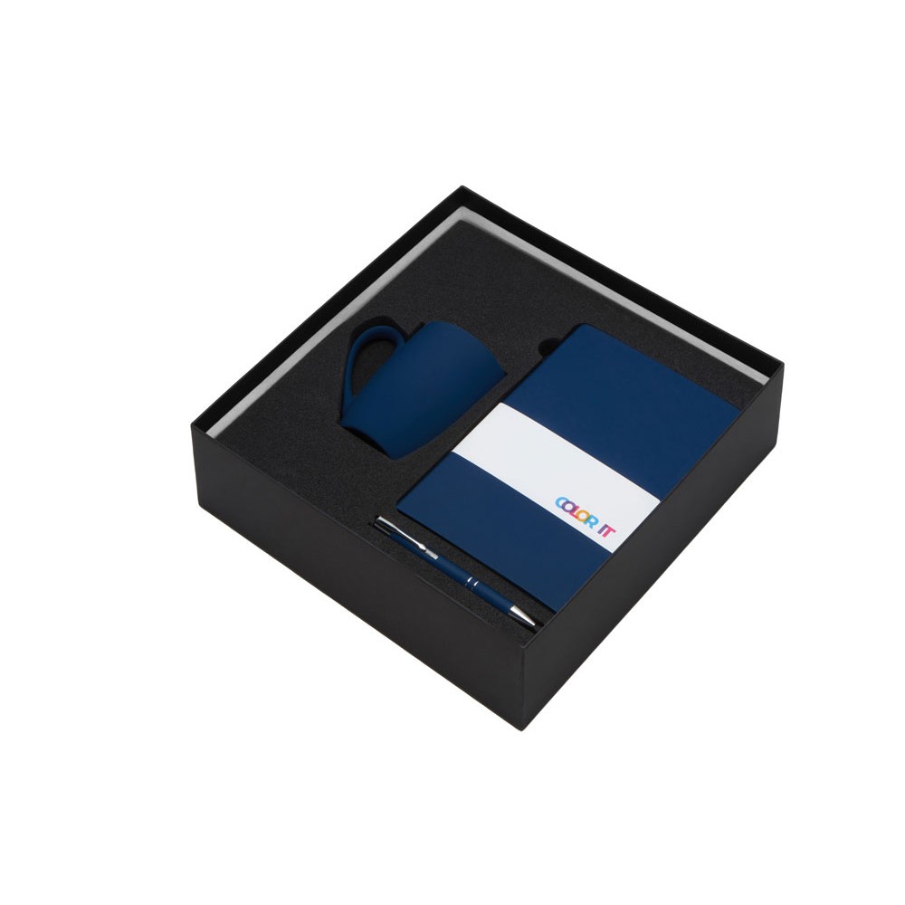 • Подарочный набор с блокнотом С1, металлической ручкой и кружкой, темно-синий