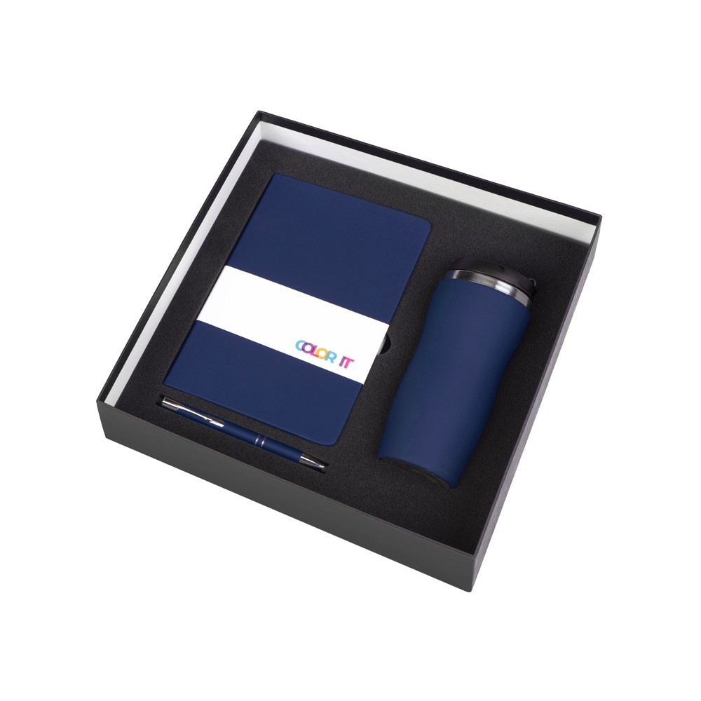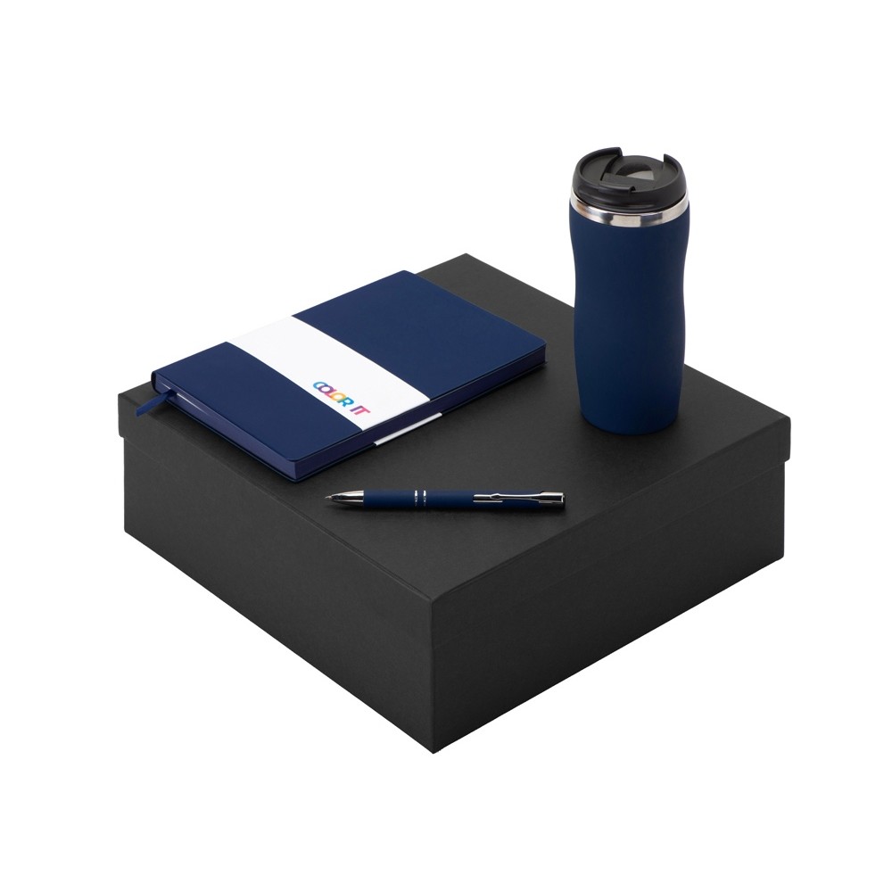• Подарочный набор с блокнотом С1, металлической ручкой и термокружкой, темно-синий