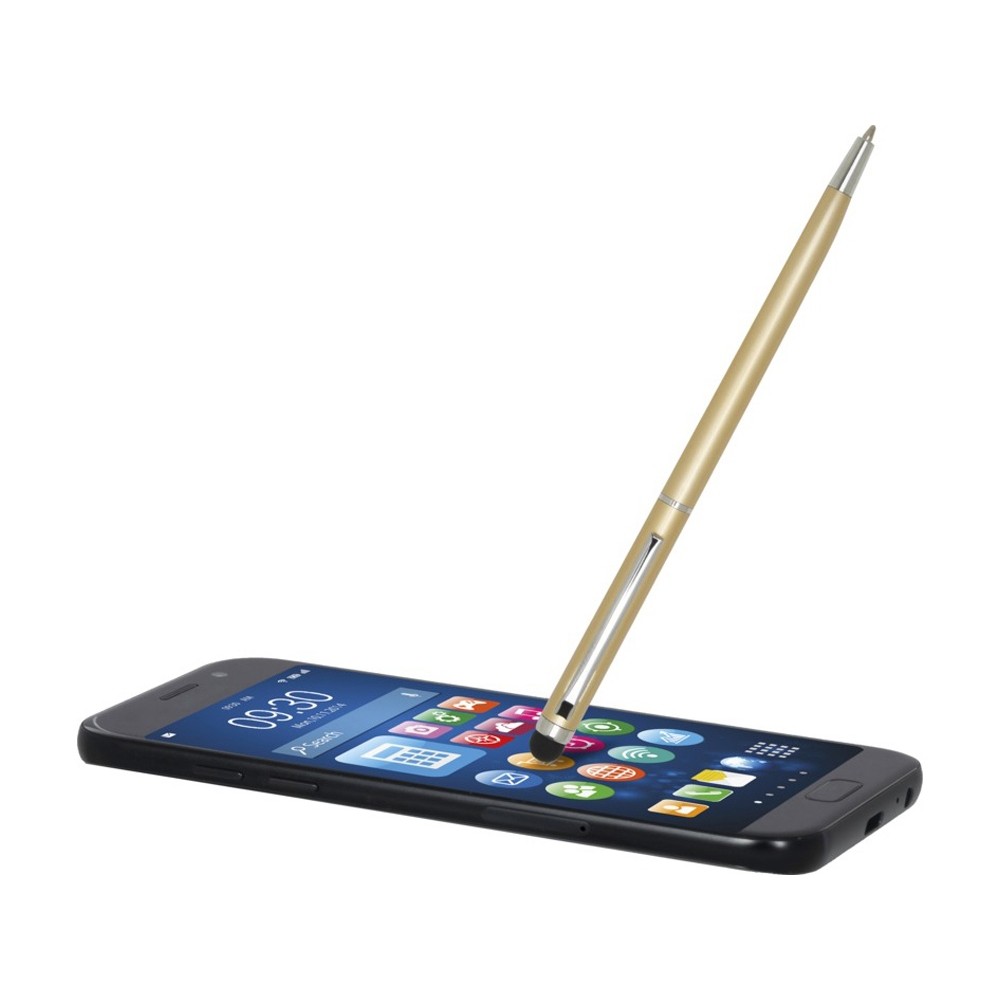 Этот универсальный комплект из шариковой ручки и стилуса изготовлен из прочного алюминия. Ручка обеспечивает плавное письмо, а встроенный стилус идеально подходит для точной навигации на сенсорных экранах. Цвет чернил: синий. Длина непрерывной линии: 1000 метров. Размер пера: 1,0 мм. Алюминий.