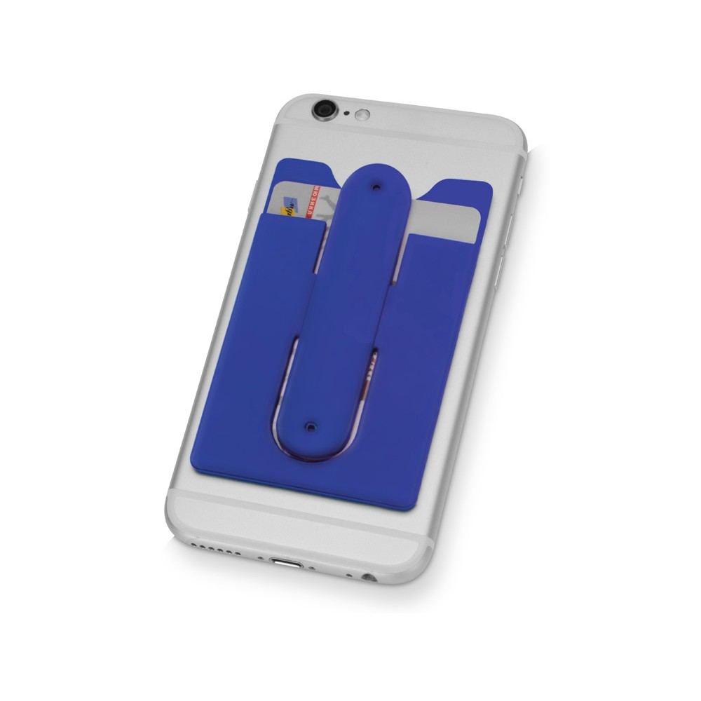 Чехол для визиток и кредитных карт с функцией подставки. За счет клейкой основы прикрепляется к обратной стороне телефона или любой другой плоской поверхности.