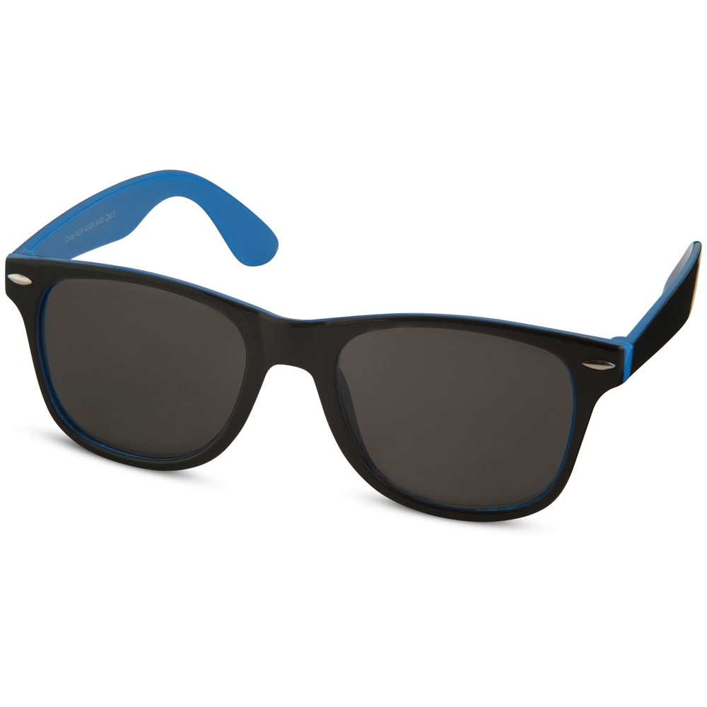 Солнцезащитные очки Sun Ray - черные с цветной вставкой. Солнцезащитные очки в стиле ретро в двух тонах с внутренним цветным покрытием и линзами 3 категории. Соответствуют стандартам EN ISO 12312-1 и UV400. ПК-пластик.