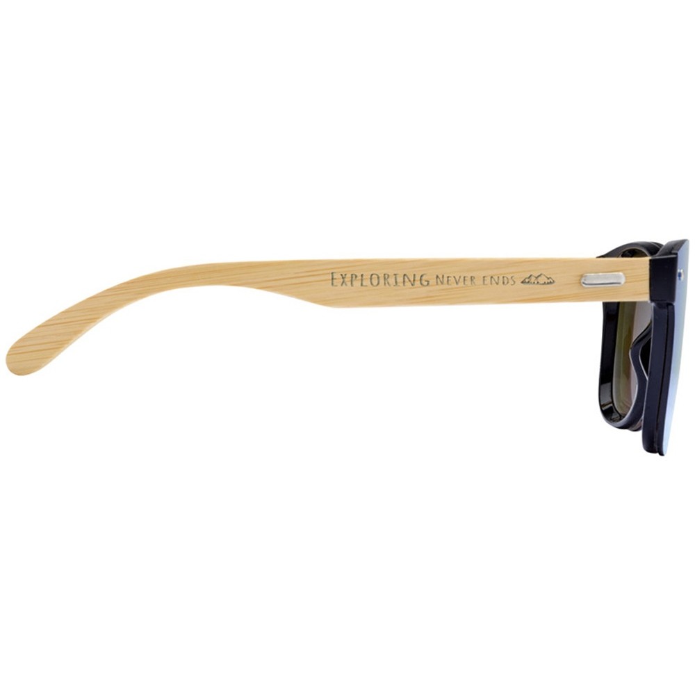Стильные солнцезащитные очки с цветными линзами и бамбуковыми дужками. Линзы УФ 400 обеспечивают защиту от вредного ультрафиолетового излучения. Соответствует стандарту безопасности ЕС EN12312-1. Бамбук, пластик PC.