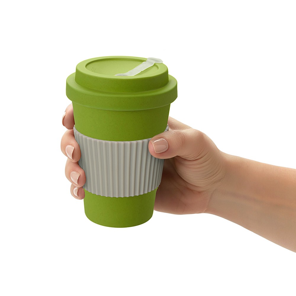 Термокружка “Muffin” изготовлена из экологически чистых материалов и на 70% состоит из натуральных бамбуковых волокон и кукурузного крахмала. Экокружка подходит как для горячих, так и для холодных напитков. Термокружку удобно и безопасно держать в руках, для этого на корпусе предусмотрена силиконовая манжета. При необходимости она может сниматься. Крышка содержит отверстие для питья, через которое удобно употреблять свой любимый напиток. Кружка не содержит бисфенол А и другие вредные примеси. Объем - 450 мл.