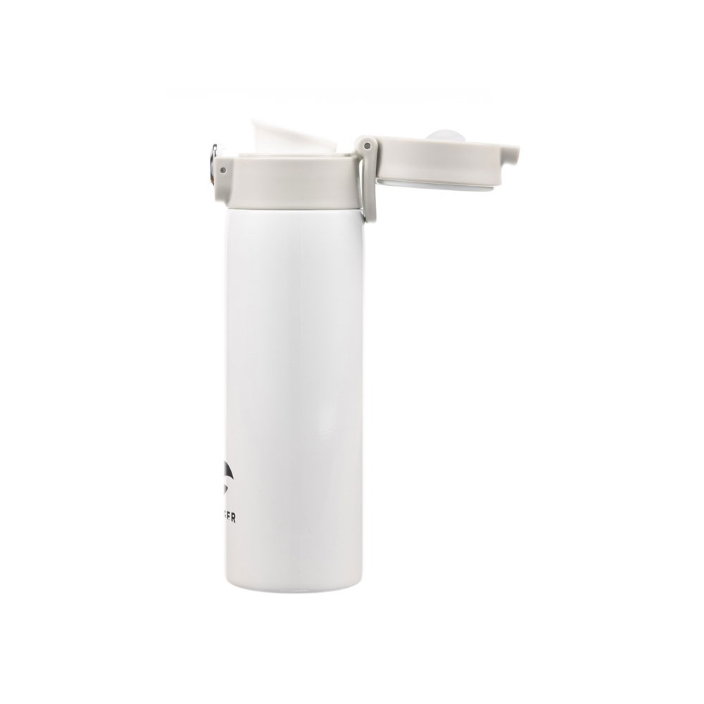 • Конструкция крышки позволяет открывать термокружку в одно касание и одной рукой – достаточно нажать на кнопку, верхняя крышка откинется на 180 градусов и автоматически зафиксируется в открытом положении.