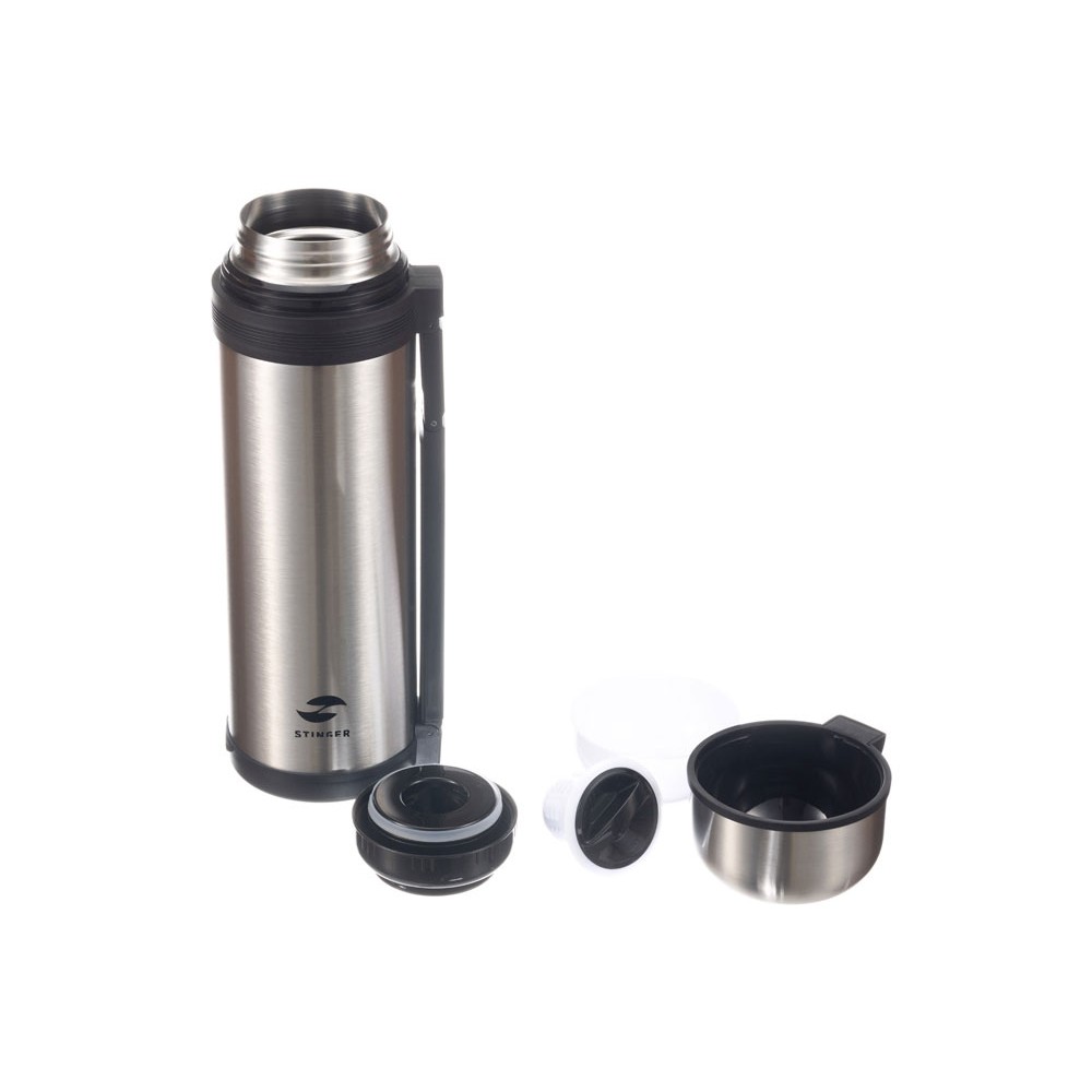 Термос Stinger, 1 л, широкий с ручкой, нержавеющая сталь, серебристый, 12,2 х 10,5 х 23,3 см