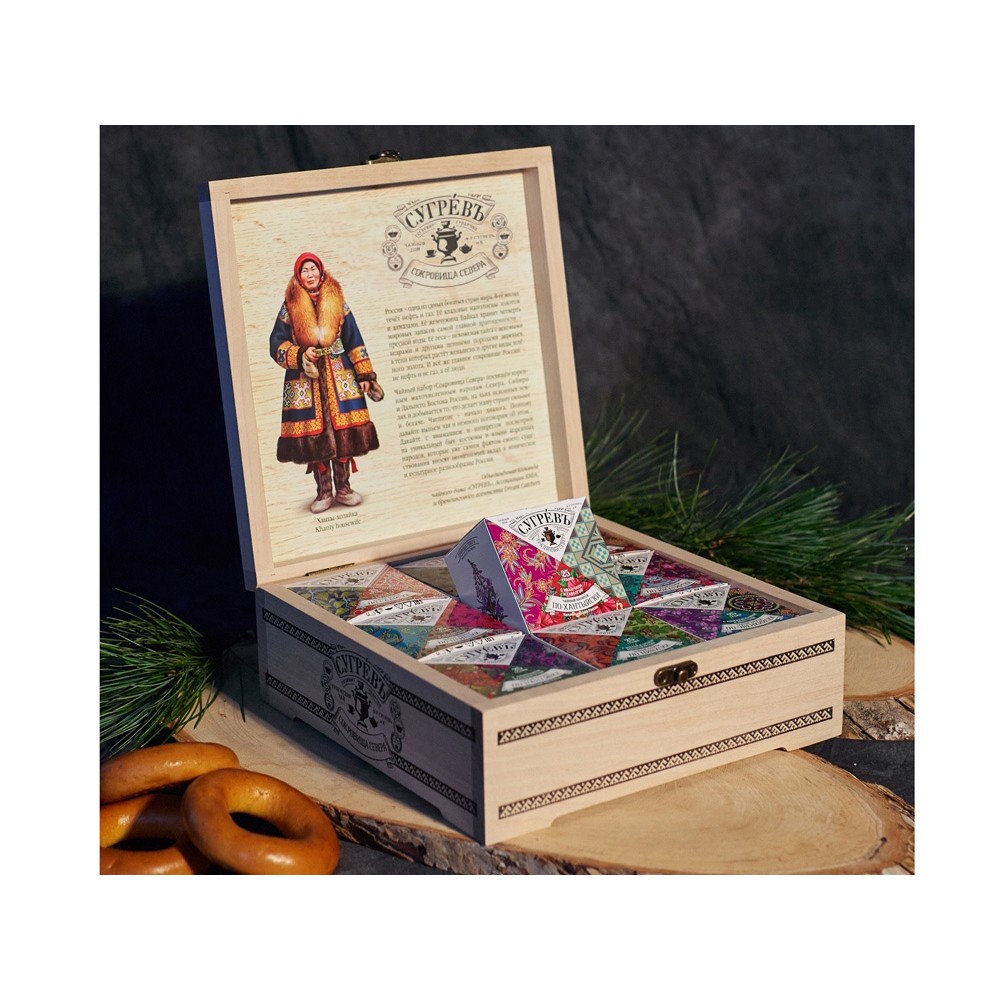 Подарочный набор c чаем "Сокровища Севера" в деревянной шкатулке