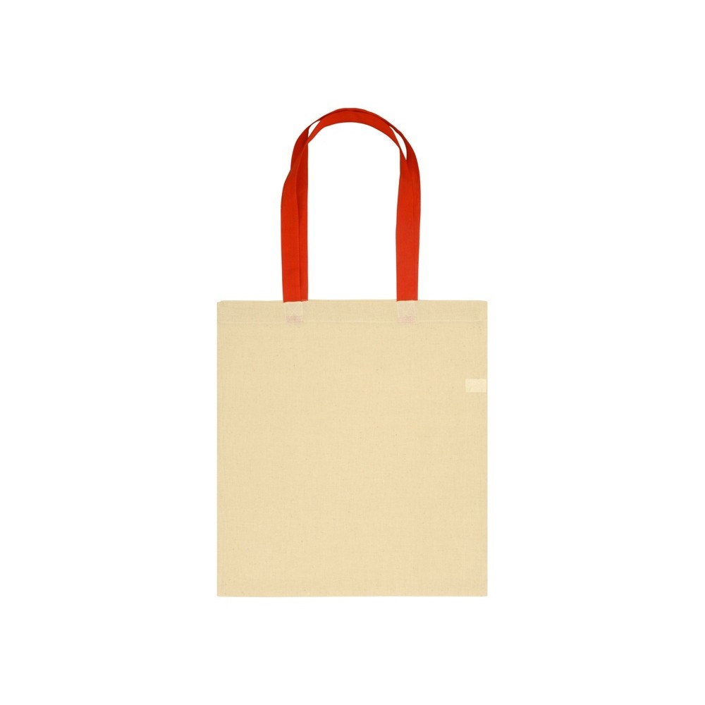 Хлопковая сумка c цветными ручками удобна для покупок благодаря легкости и вместительности. Высота ручек 29 см.