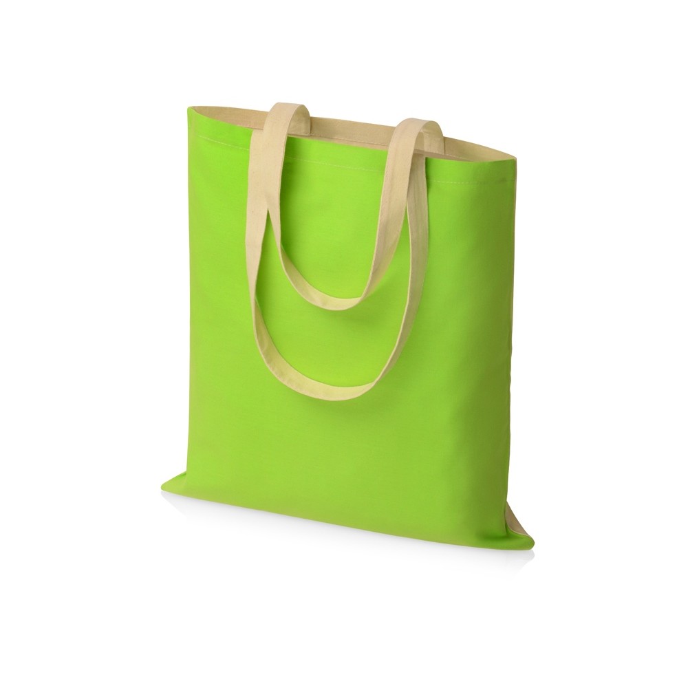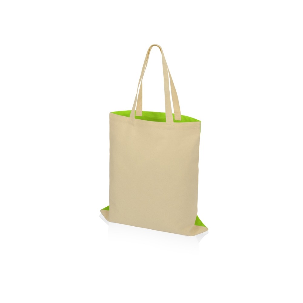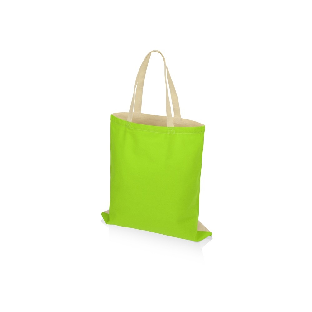 Сумка для шопинга Twin двухцветная из хлопка, 180 г/м2, зеленое яблоко/натуральный