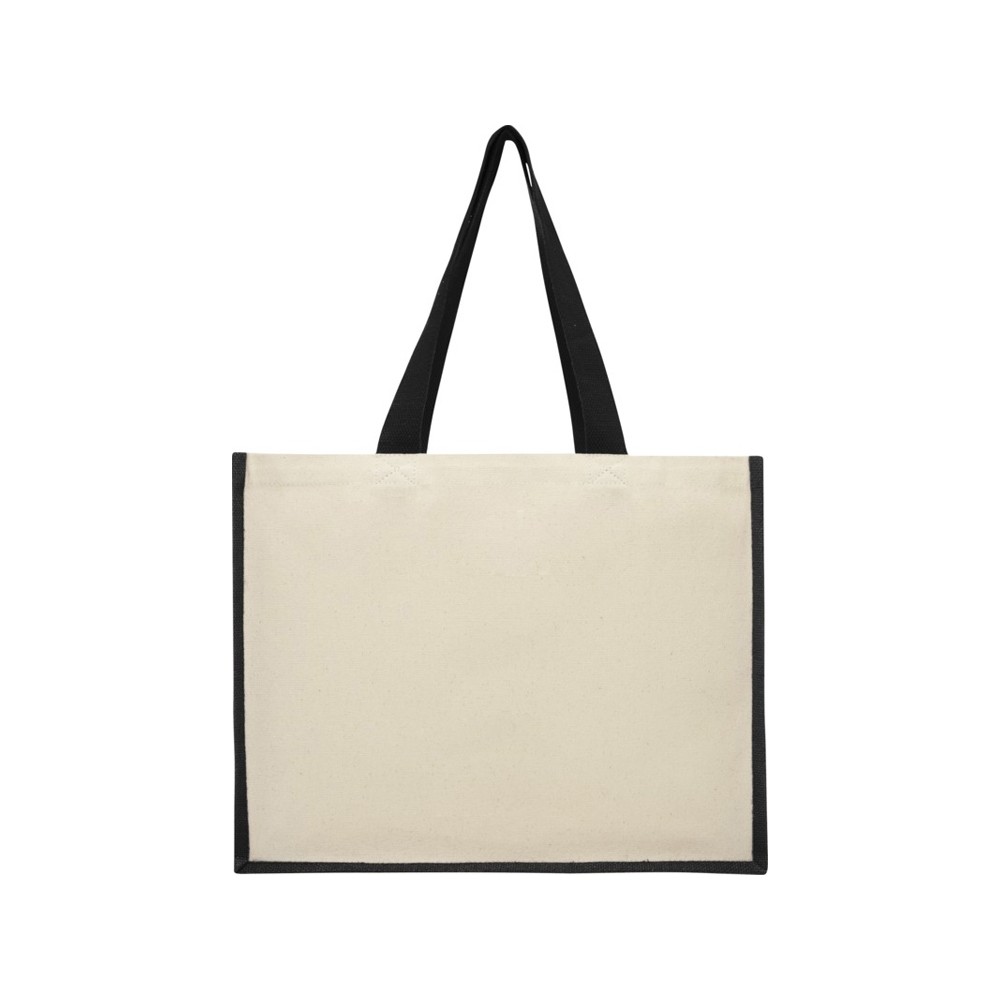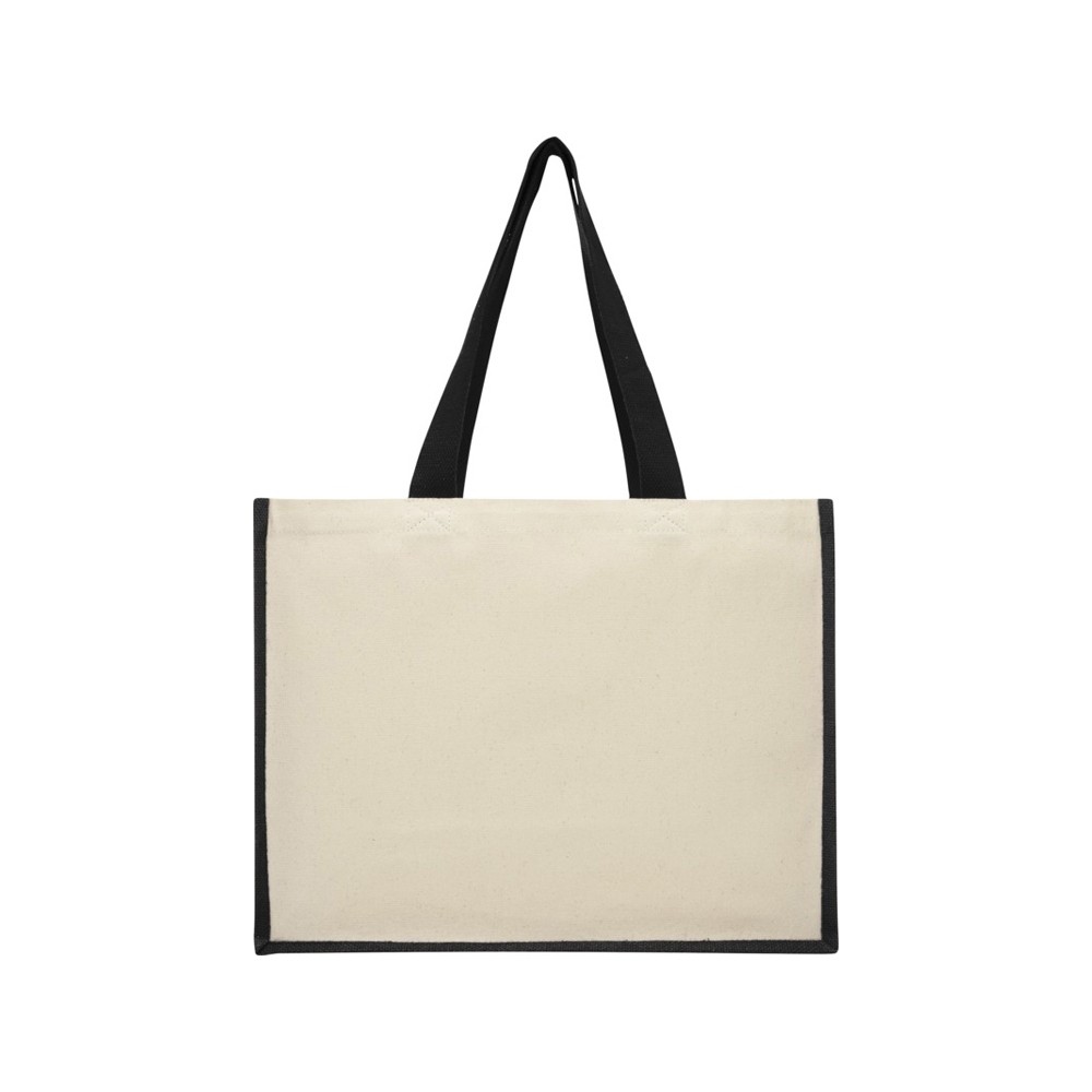Модная сумка для покупок с боковыми панелями (вес 320 г/м²), подходящими для нанесения изображений, окантовкой из ламинированного джута и хлопковыми ручками.