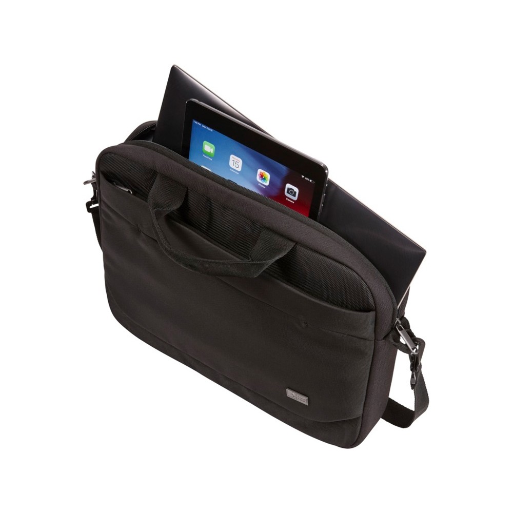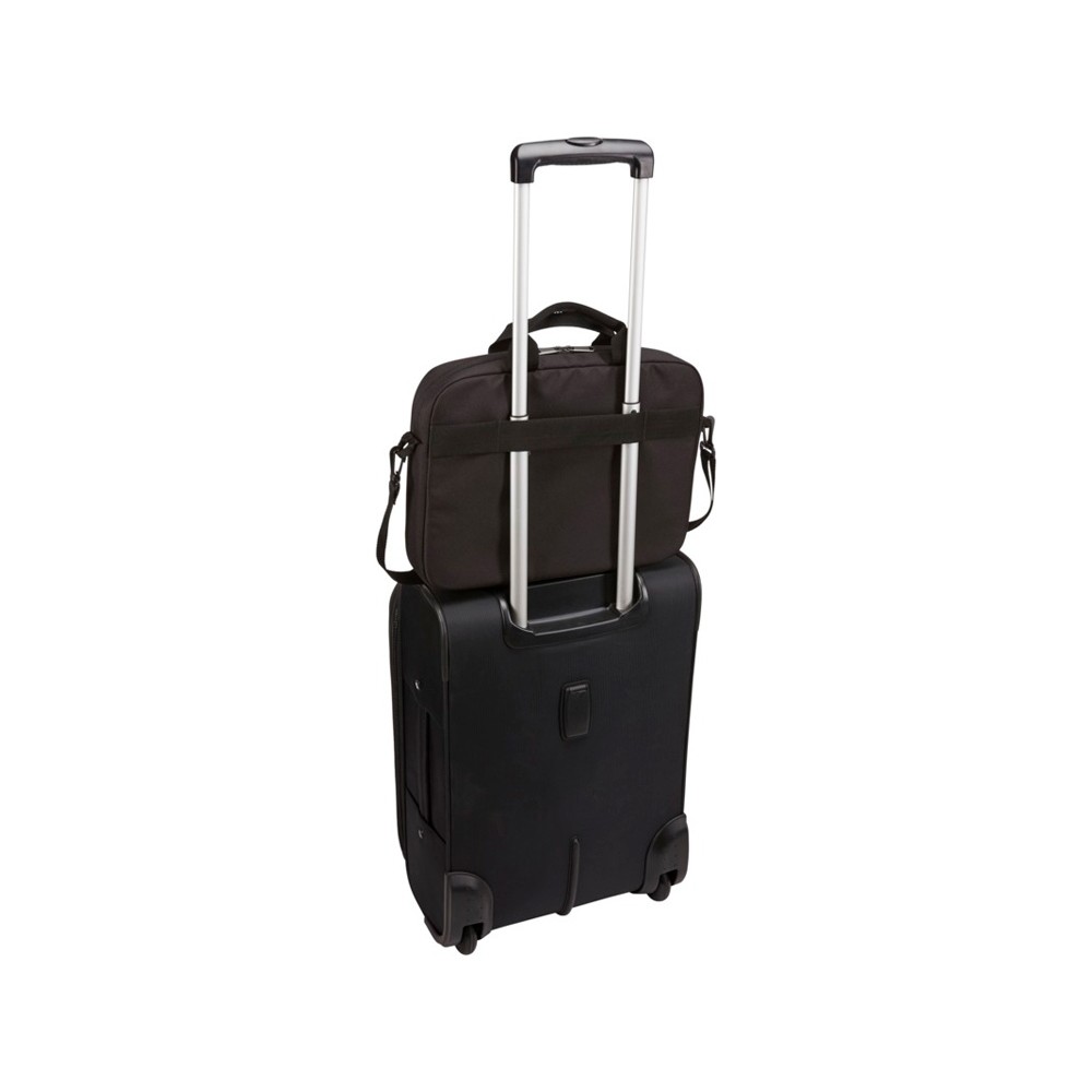 Оснащена главным отделением с мягким чехлом для ноутбука 14" и карманом для планшета 10,1". Поставляется с передней панелью-органайзером для хранения ручек, небольших электронных приборов и кабелей. На переднем кармане предусмотрена скрытая молния, которая позволяет безопасно хранить телефон и быстро получать к нему доступ. Имеет съемные мягкие и регулируемые наплечные ремни, мягкие верхние ручки и рукав для фиксации на выдвижной ручке дорожной сумки. Гарантия от Case Logic: 25 лет.