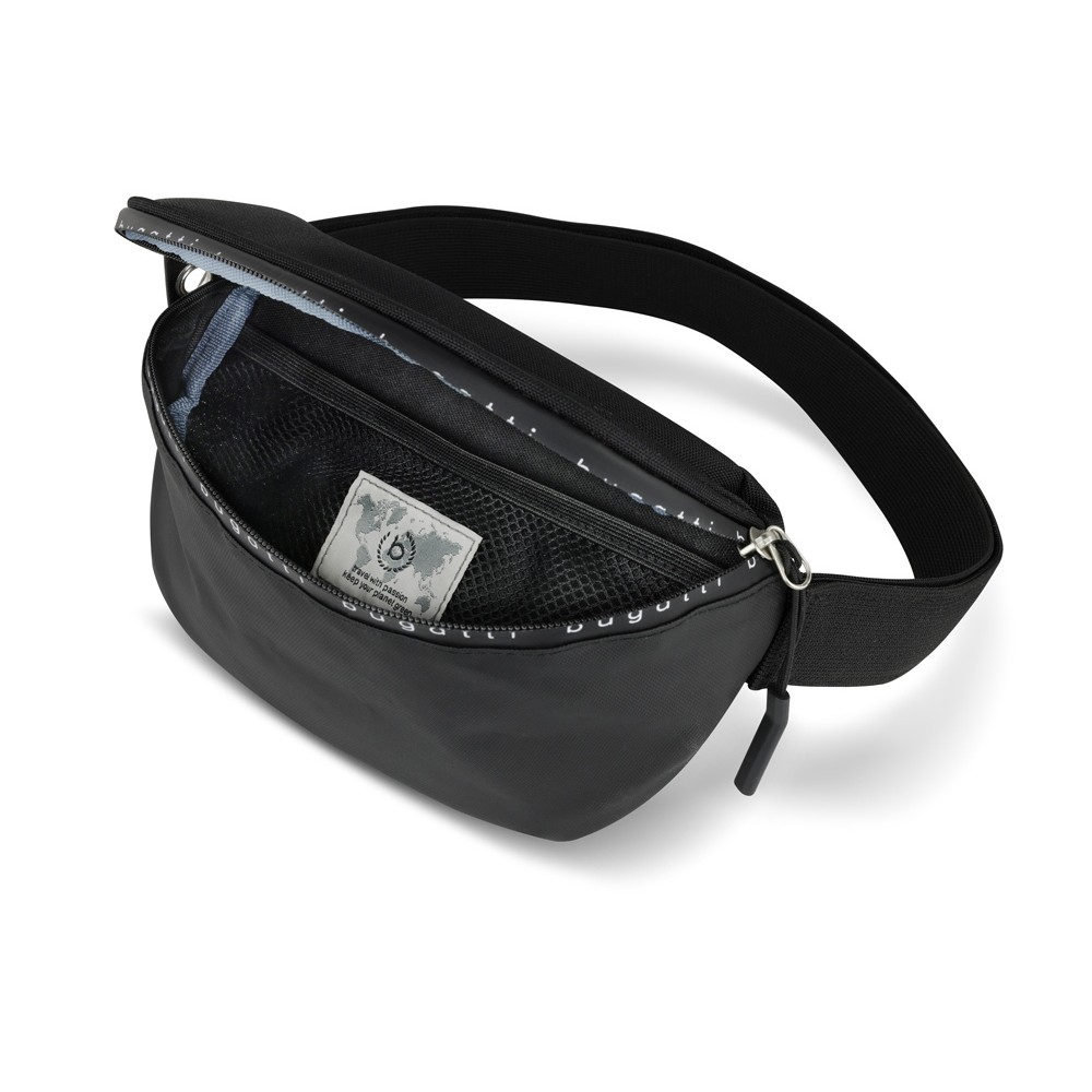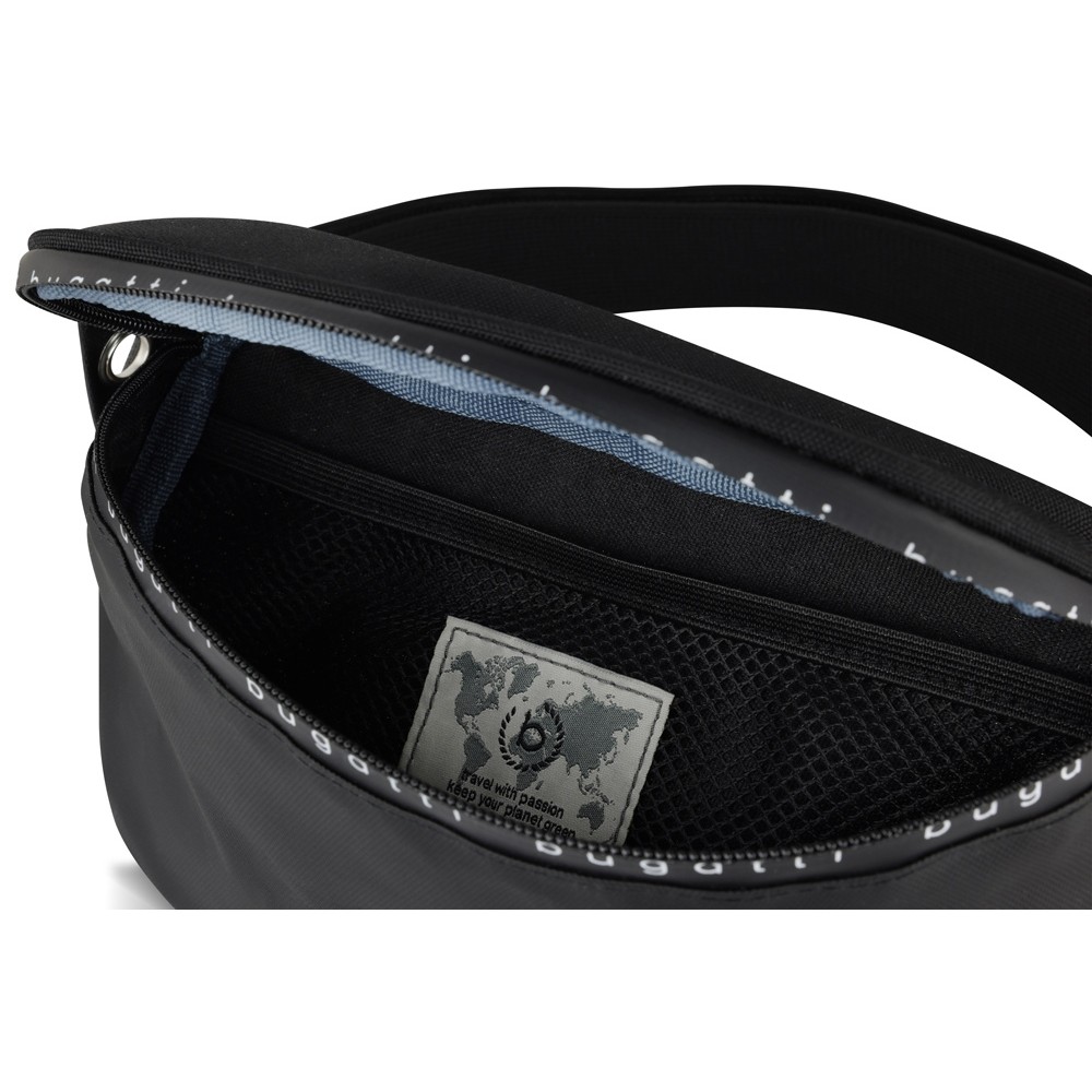 Сумка на пояс BUGATTI БЛАНК ОБЛЕГЧЕННАЯ | BLANC DELIGHT, чёрная, нейлон RPET600D/тарпаулин/полиэстер, 24х11х12,5 см, 2 л