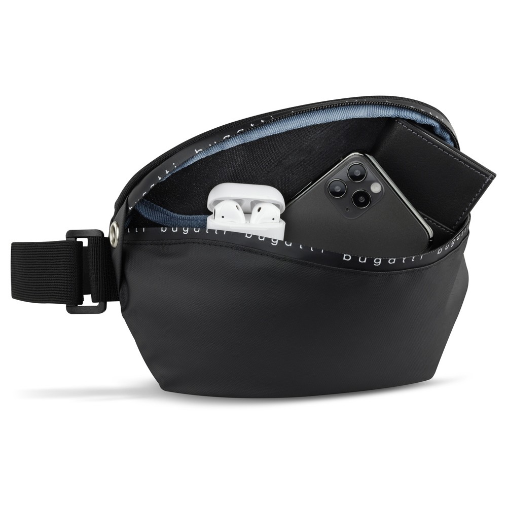 • Сумка на пояс BUGATTI БЛАНК ОБЛЕГЧЕННАЯ | BLANC DELIGHT, чёрная, нейлон RPET600D/тарпаулин/полиэстер, 24х11х12,5 см, 2 л