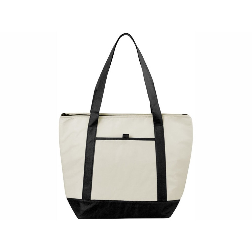 Нетканая сумка-холодильник Lighthouse. Основное отделение на молнии с двойными ручками. Высота ручек 23,5 см. Открытый передний карман с держателем для ручки. Аксессуары не включены. Нетканый полипропилен 80 г/м².