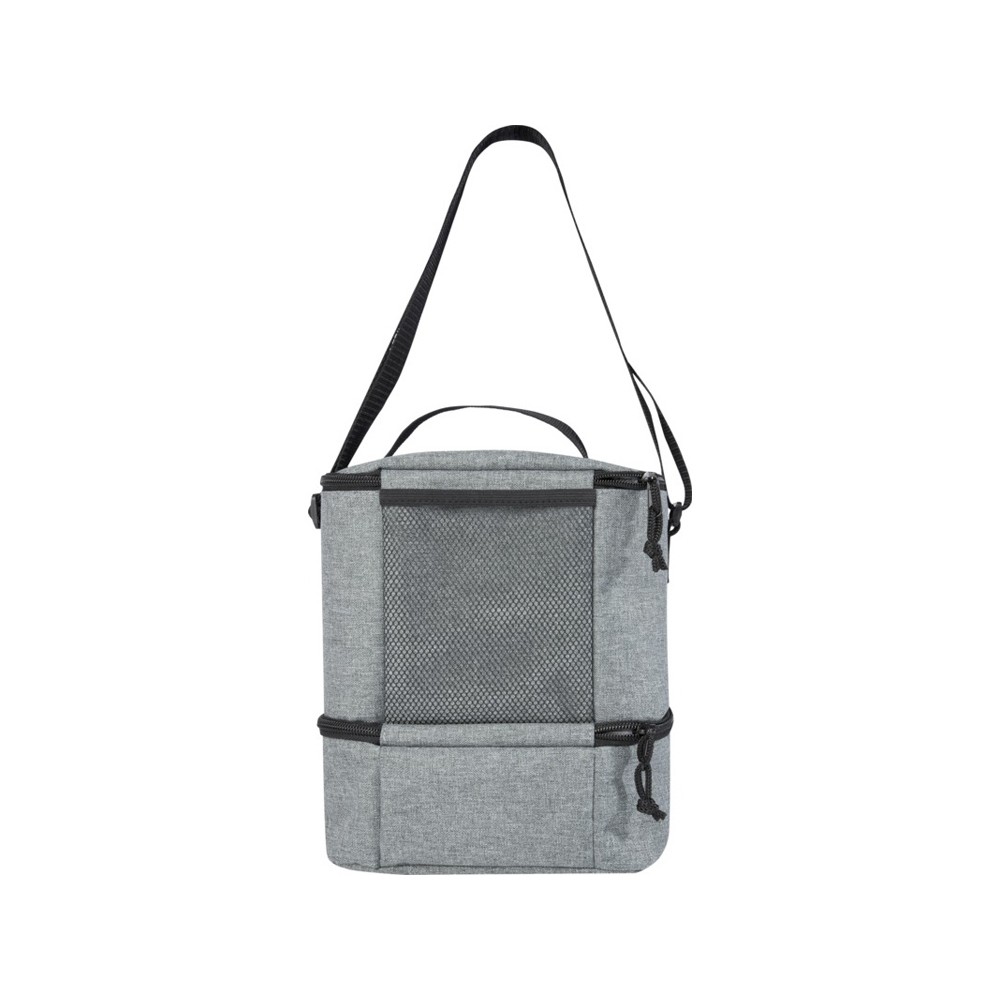 Сумка-холодильник Tundra выполнена из переработанного материала, в ней достаточно места для всех ваших продуктов, которые вы берете на обед. Имеет одно верхнее изолированное отделение на молнии и одно нижнее изолированное отделение на молнии. Нижнее отделение идеально подходит для бенто-бокса, а в переднем прорезном кармане удобно носить защитную маску и другие небольшие предметы. Подкладка и внешний слой сумки-холодильника PEVA изготовлены из переработанного РЕТ-пластика.
