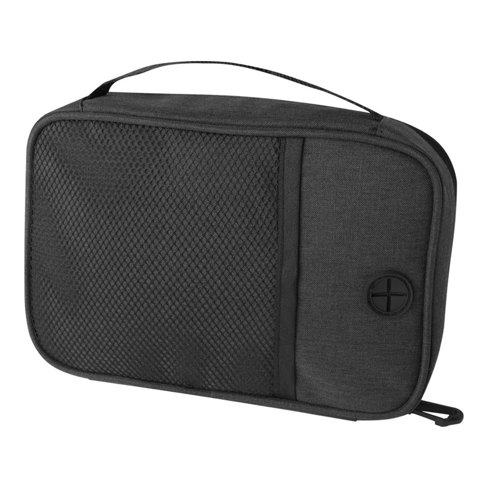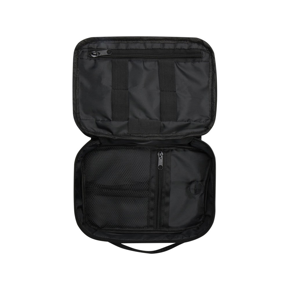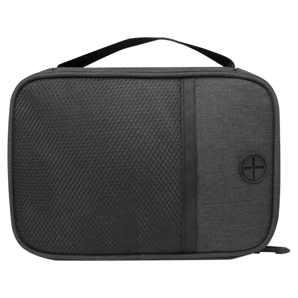 Сумка для техники Ross из переработанного ПЭТ, соответствующего стандарту GRS, идеально подходит для людей, постоянно находящихся в пути, и позволяет организовывать портативные зарядные устройства, зарядные кабели или любые другие электронные аксессуары. Имеет несколько карманов, эластичных петель и вставок для протягивания кабелей, позволяющих заряжать телефон, храня портативное зарядное устройство в сумке. Также имеет пластиковый карабин для крепления к другой сумке. Емкость: 1 литров. 300DGRS certified recycled polyester.