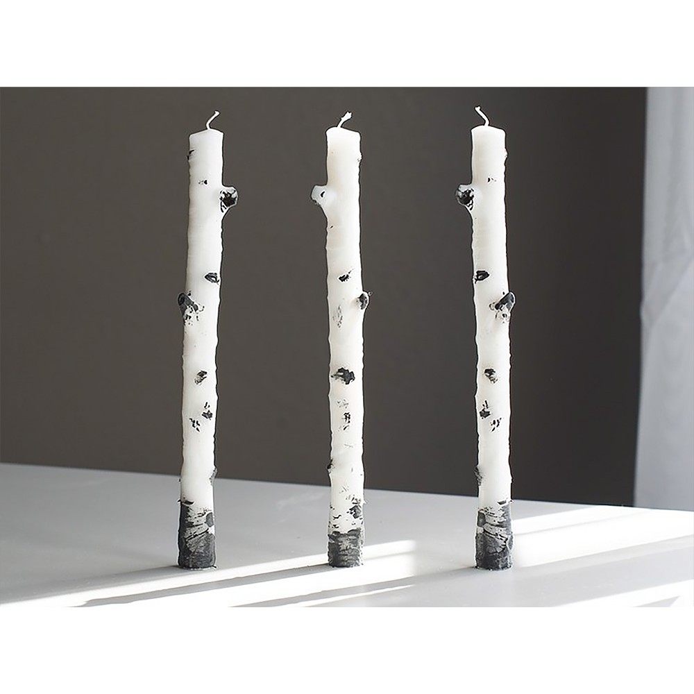 Детализированная фактура коры и мягкие оттенки белого с тёмными вкраплениями создают реалистичный образ, будто свечи только что вышли из леса. Они станут красивым акцентом в сервировке стола, уютным элементом декора или тёплым подарком для ценителей природы.