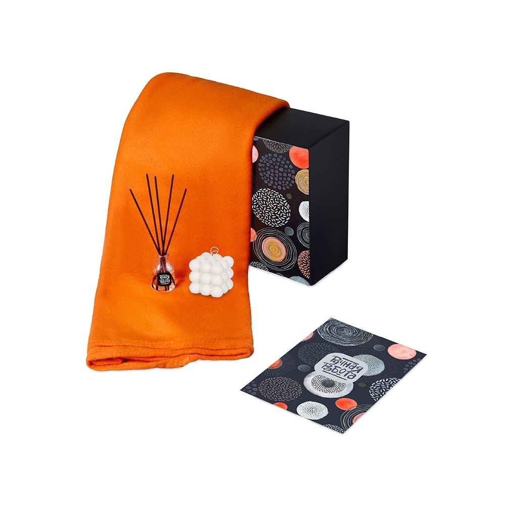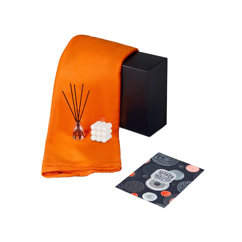 • Подарочный набор с пледом, свечой и диффузором, оранжевый