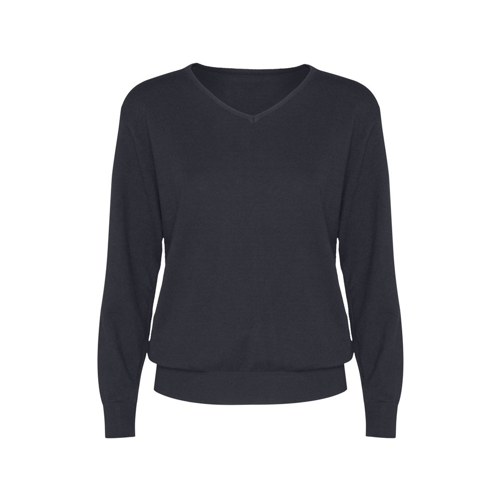 Джемпер c V вырезом тонкой вязки для женщин. Отделка рибом 1х1 по горловине, низу и манжетам