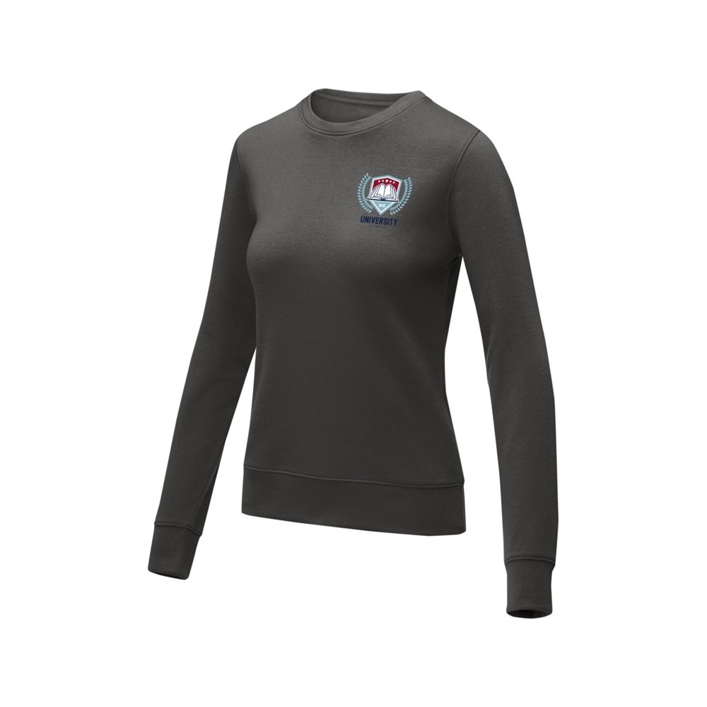 Женский свитер Zenon с круглым вырезом. Основная этикетка, которую можно оторвать или отрезать, без неудобных пришитых ярлыков. Круглый вырез. Воротник из гладкого трикотажа. С манжетами из гладкого трикотажа в рубчик. С подшивкой из гладкого трикотажа в рубчик. Внутренняя сторона покрыта ворсом. Самоклеящаяся лента на воротнике. Придающие форму швы и зауженная талия для ровного прилегания. Трикотаж 50% Хлопок, 50% Полиэстер, 240 g/m2.