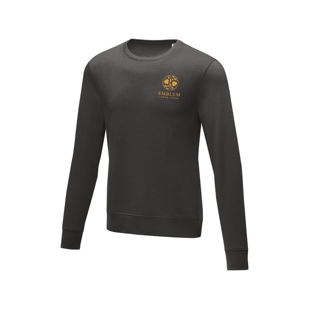 Мужской свитер Zenon с круглым вырезом. Основная этикетка, которую можно оторвать или отрезать, без неудобных пришитых ярлыков. Круглый вырез. Воротник из гладкого трикотажа. С манжетами из гладкого трикотажа в рубчик. С подшивкой из гладкого трикотажа в рубчик. Внутренняя сторона покрыта ворсом. Самоклеящаяся лента на воротнике. Трикотаж 50% Хлопок, 50% Полиэстер, 240 g/m2.