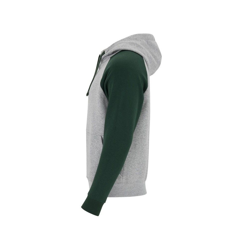Толстовка с капюшоном "Badet" мужской, серый меланж/бутылочный зеленый