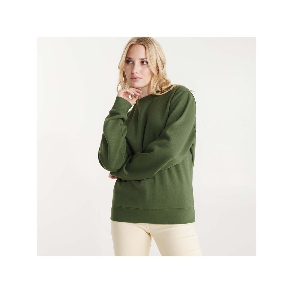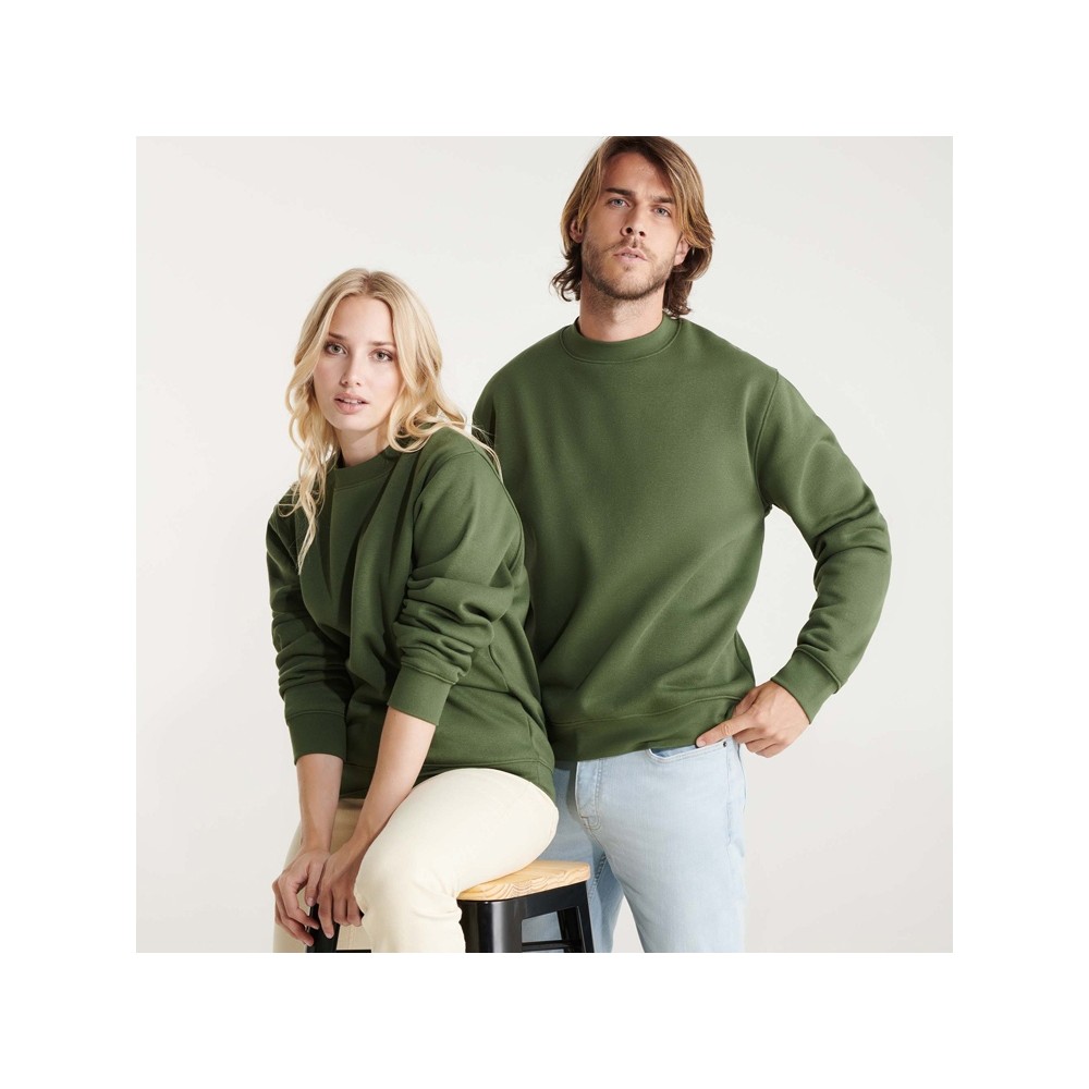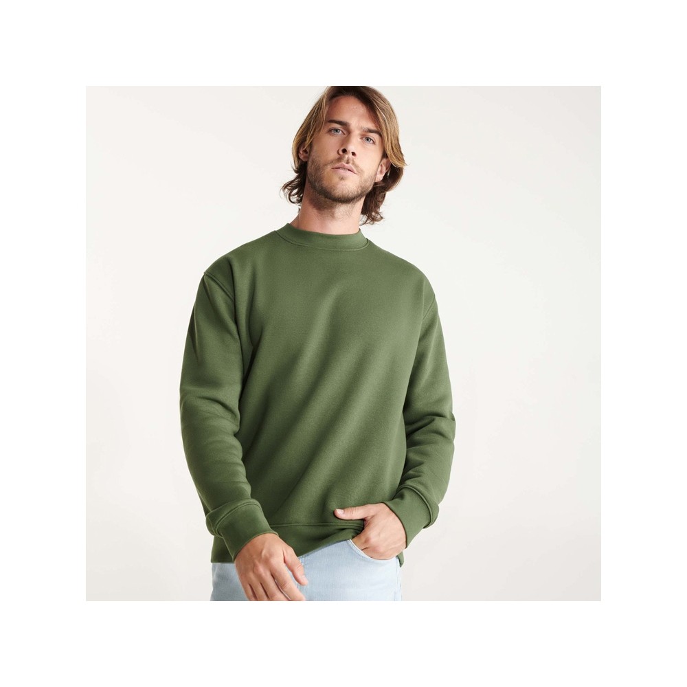 Классическая толстовка свитшот с эластичным рибом 1x1 на воротнике, манжетах и низу изделия. Шов горловины укреплен изнутри тесьмой.