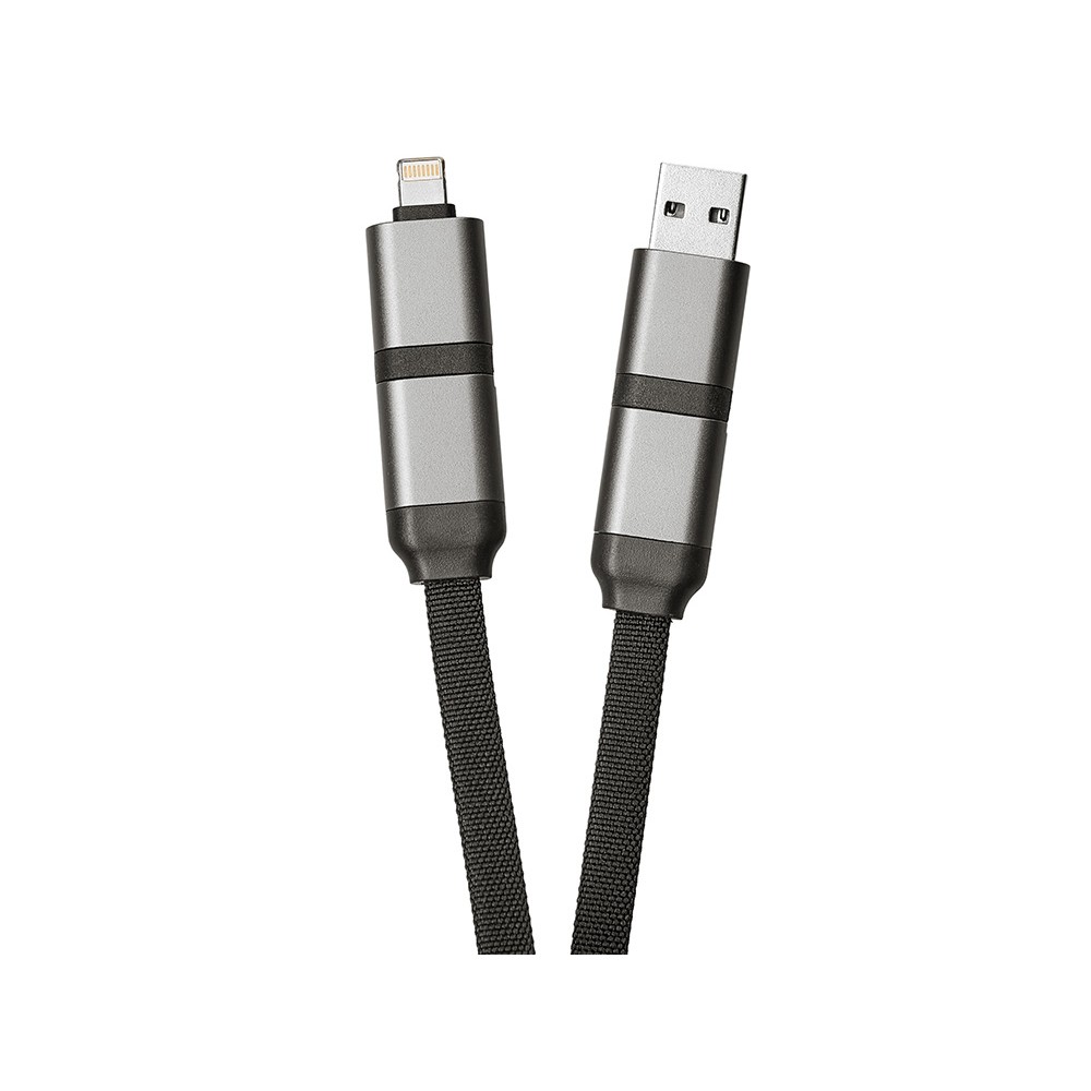 - Универсальность на каждый день — 2 входа (USB-C / USB-A) + 2 выхода (USB-C / Lightning) = один кабель для всех устройств.