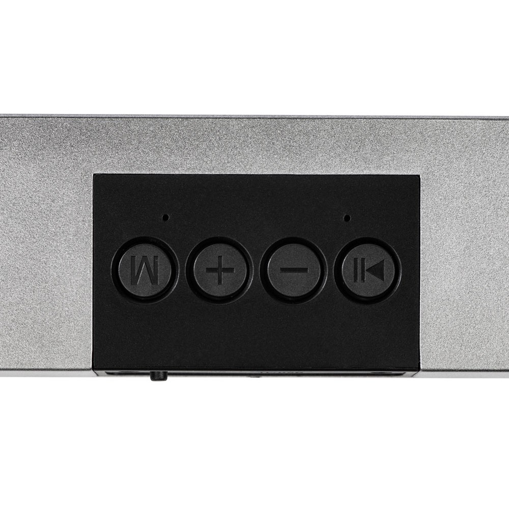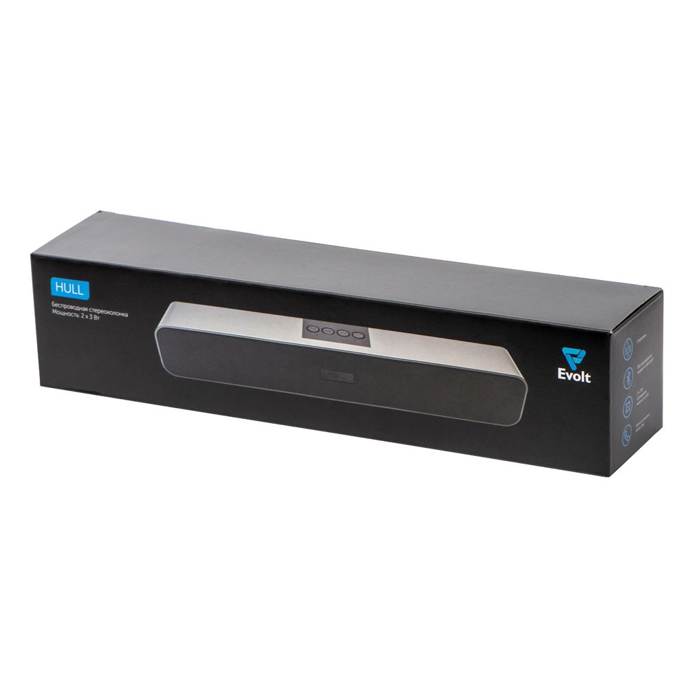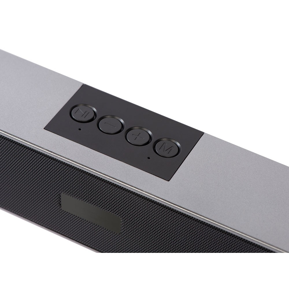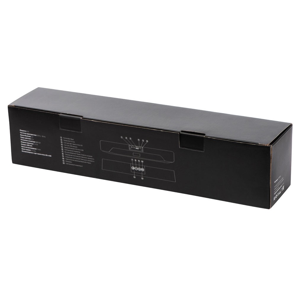 Портативная стереоколонка имеет два динамика по 3 Вт каждый, которые стереофонически распределяют звук. Саундбар воспроизводит музыку с USB-флешки и с SD-карты, а также по Bluetooth.