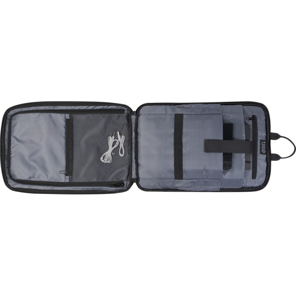 Изготовленный из прочного переработанного полиэстера 900D, сертифицированного по стандарту GRS, рюкзак Rise выполняет все необходимые функции. Имеет мягкий чехол для ноутбука с диагональю 15,6 дюйма, дополнительное отделение для небольшого ноутбука или планшета, а также карманы на молнии для небольших предметов. Кроме того, на внутренней стороне имеется эластичный ремешок для размещения бутылки с водой. На спинке рюкзака есть удобный эластичный ремень, позволяющий легко крепить его к тележке. Переработанный полиэстер, 330 g/m2, подкладка- 900D переработанный полиэстер, 290 g/m2.