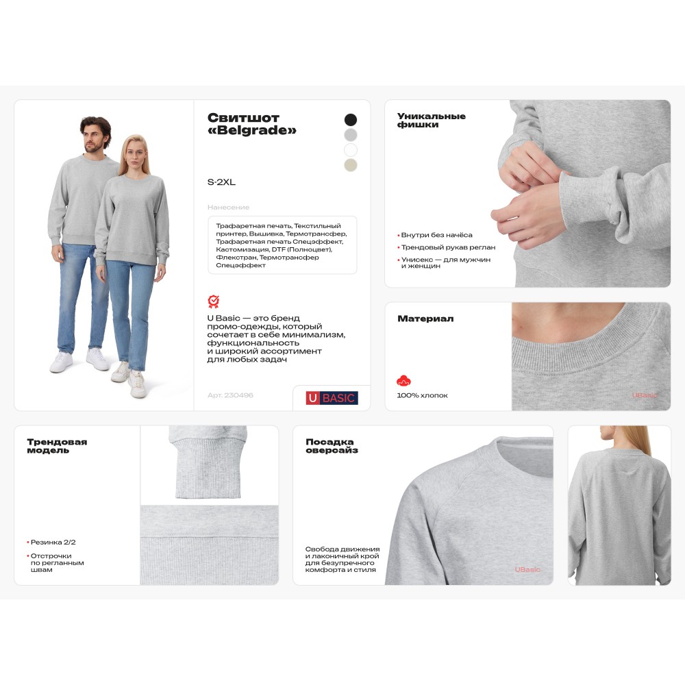 Технические характеристики Свитшот оверсайз с рукавом реглан «Belgrade», унисекс, серый меланж