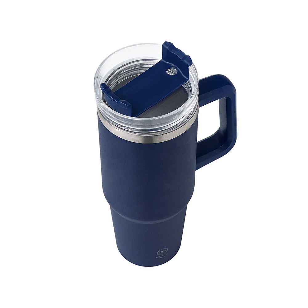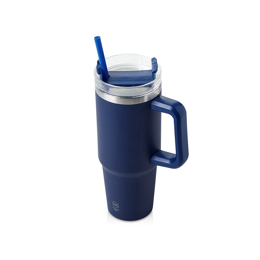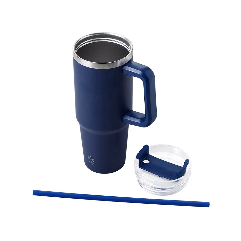 Двухстеночная термокружка из переработанной нержавеющей стали 304. Крышка с трубочкой и винтовой системой закрытия. Объём: 850 мл. Поставляется в дизайнерской коробке.
