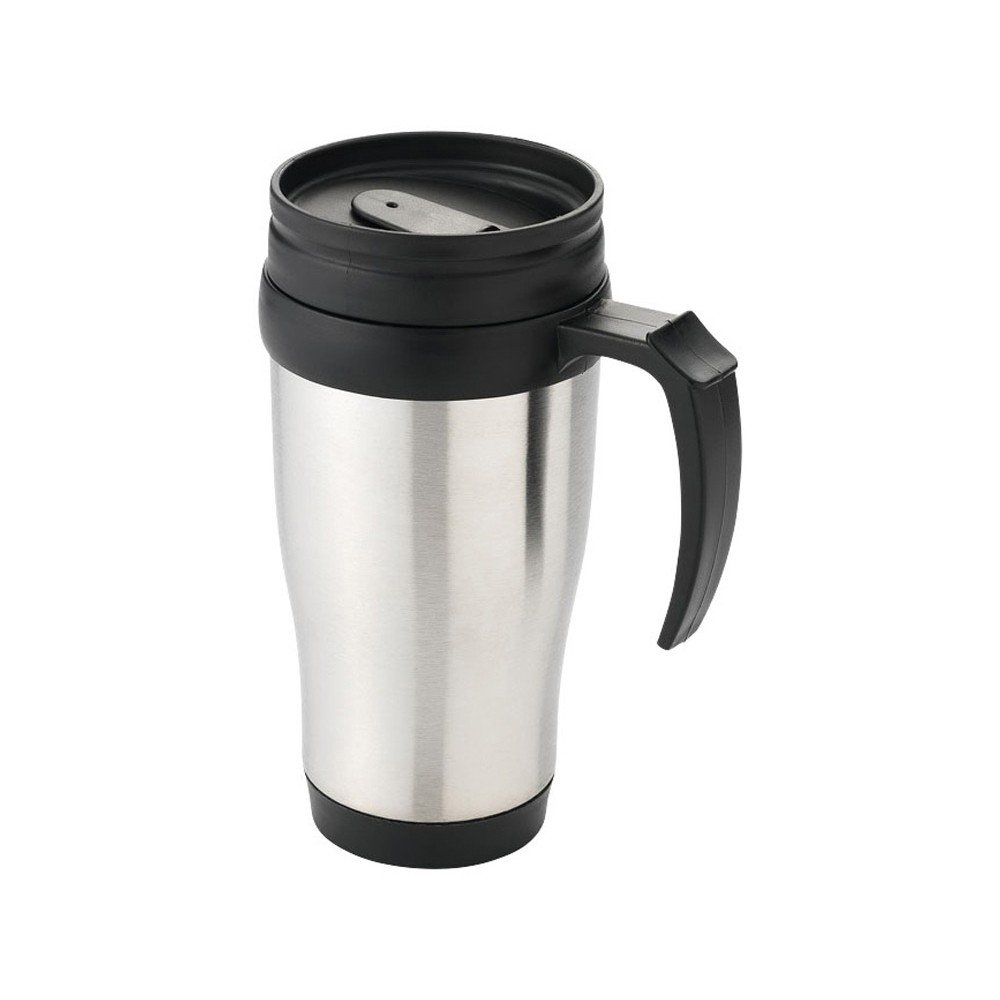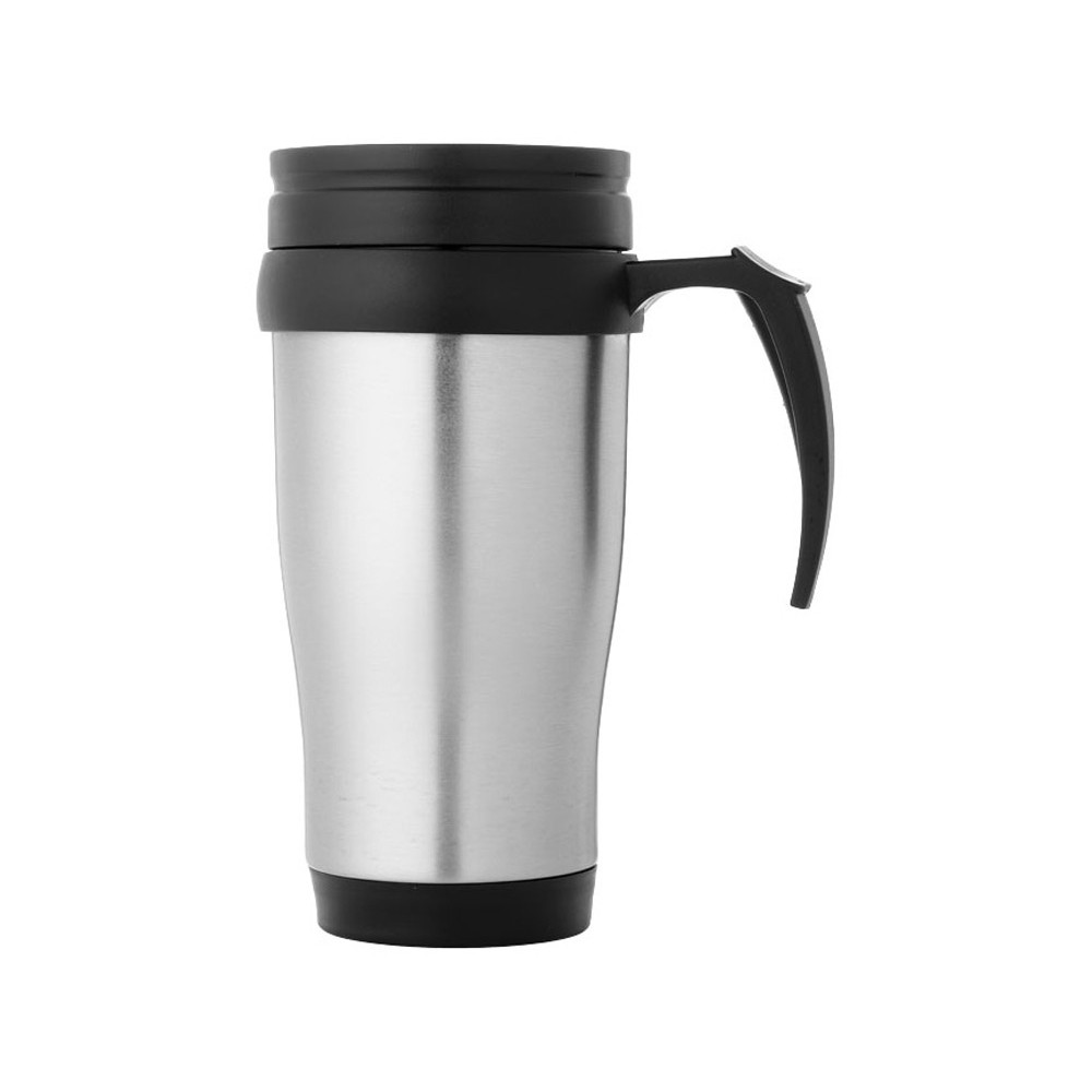 Термокружка Sanibel. Кружка с двойными стенками со съемной крышкой и открывающимся отверстием для питья. Объем – 330 мл. Наружная поверхность из нержавеющей стали, внутренняя поверхность из пластика. Без БФА.