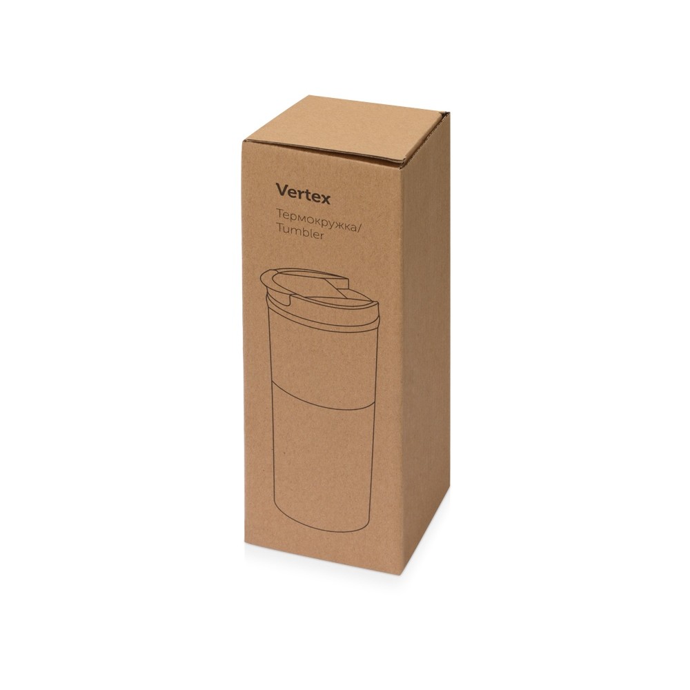Термокружка «Vertex» удобной классической формы. В дизайне термокружки удачно сочетаются два материала. Внутренняя колба и верхняя часть термокружки выполнены из пищевого пластика. Нижняя часть – из нержавеющей стали. Обе поверхности подходят для нанесений. Крышка имеет плотный клапан, который открывается на 180° и не мешает при использовании. Сохраняет тепло до 3-х часов. Поставляется в индивидуальной крафтовой упаковке.
